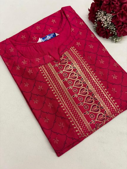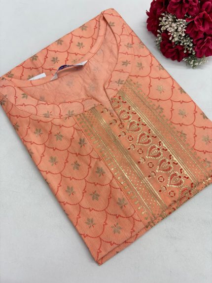 Festive Silk Printed Side Open Kurti With Pocket & beautiful neck design Fabric: Festive Silk Length: 40 to 41 inches