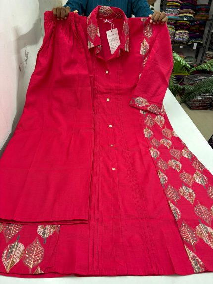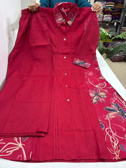 Vatican Silk Co-ord Set Fabric: Vatican Silk Top Model : A Line Pant Model : Palazzo Top Length : 42