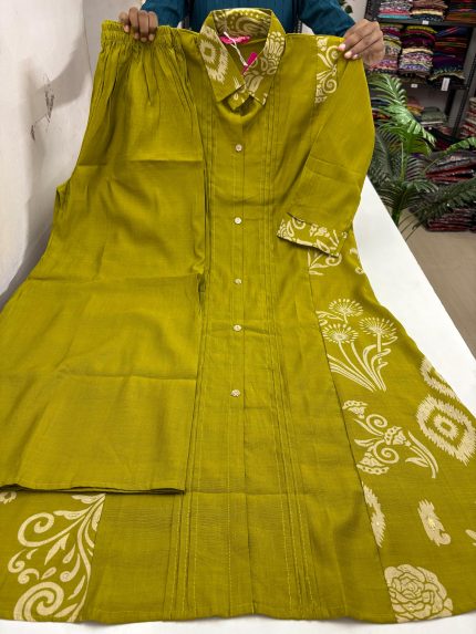 Trendy Rayon coord set Top Model: Side Slit With pocket Top length : 41 inches Bottom length : 39 to
