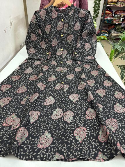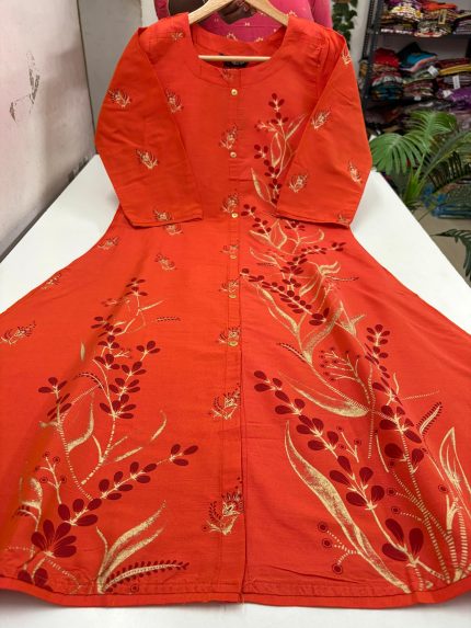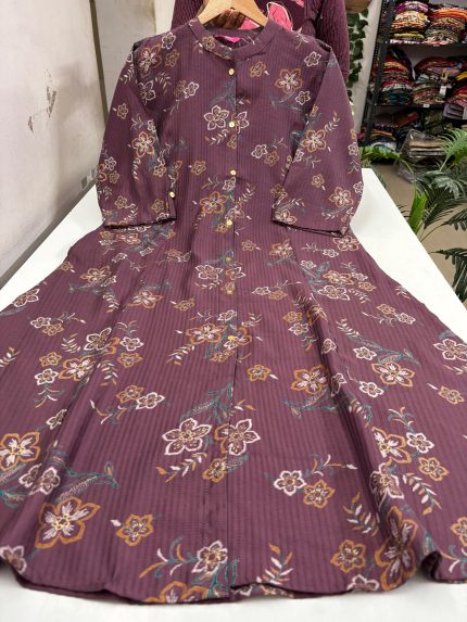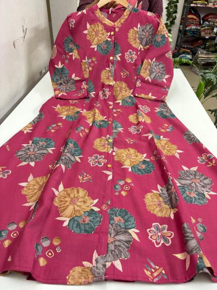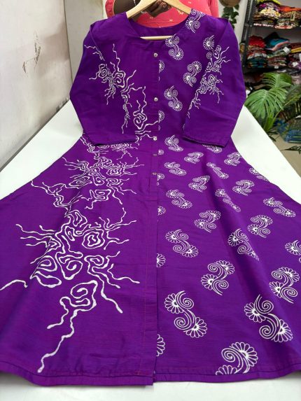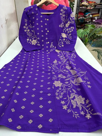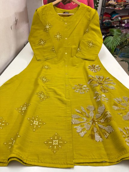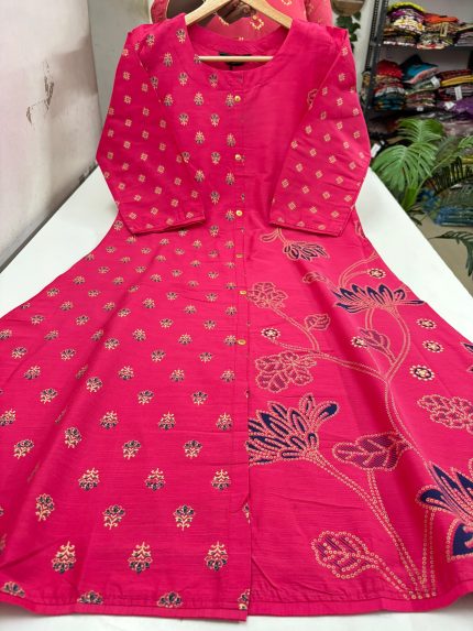 Premium Semi Raw Silk A Line Kurti With Side Pocket Kurti Length : 44 inches SIZE CHART M 38 INCHES