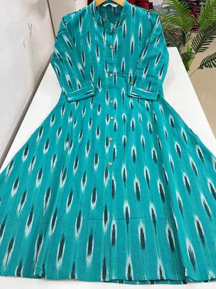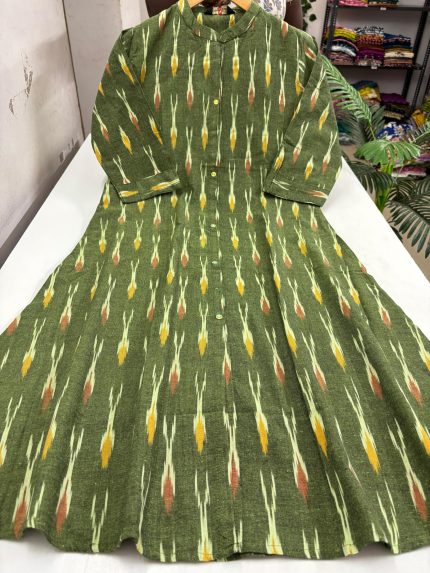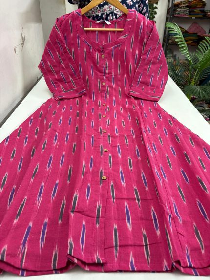 Premium Handloom Cotton Umbrella Frock with Back Rope &  Side Pocket Back Zip Attached Fabric: Handloom Cotton Sleeves :  3