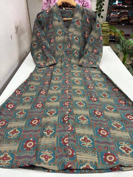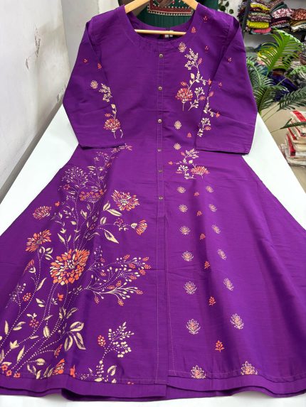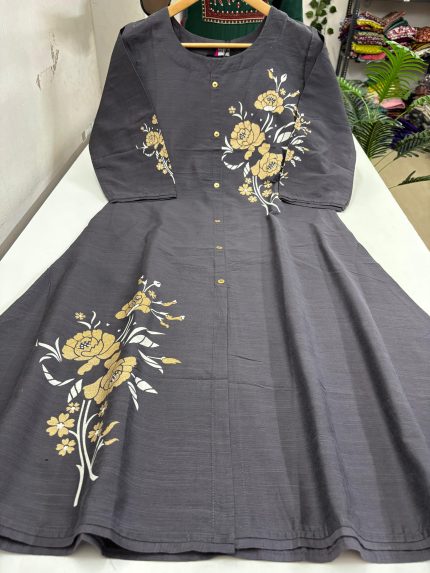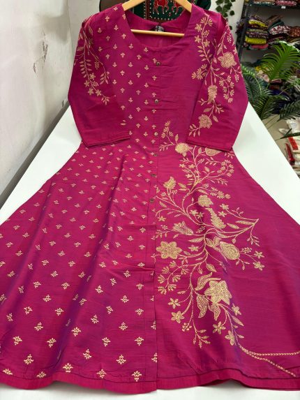 Premium Semi Raw Silk A Line Kurti With Side Pocket Kurti Length : 45inches SIZE CHART M 38 INCHES L