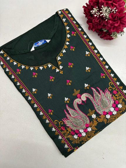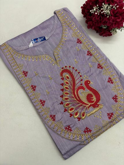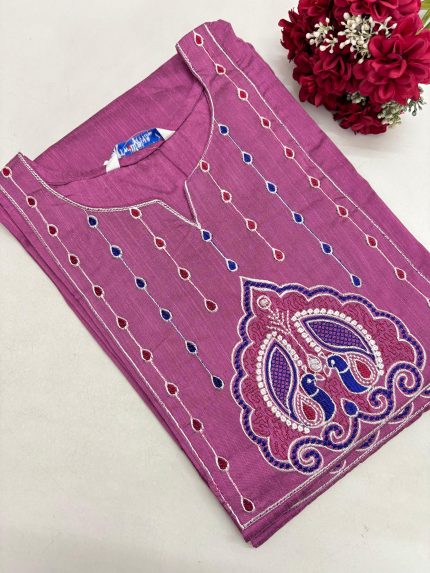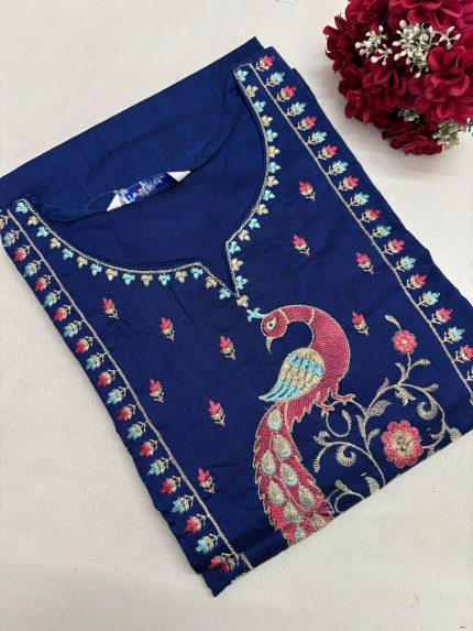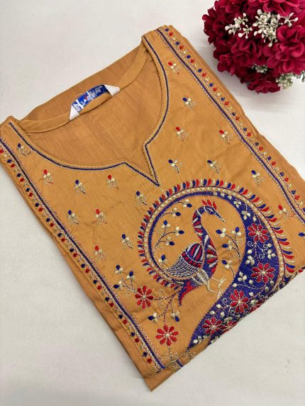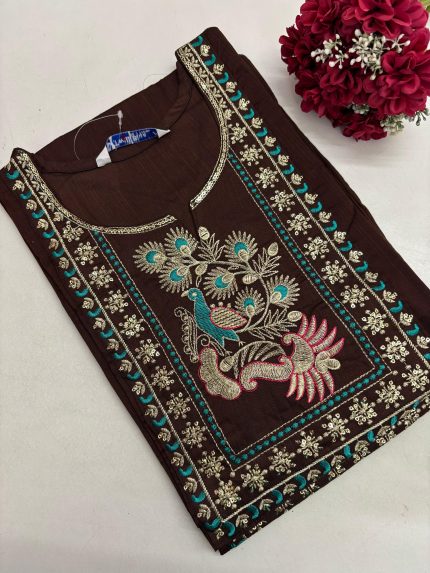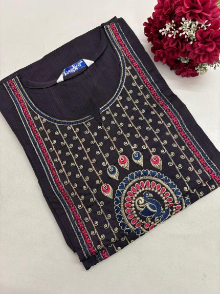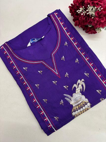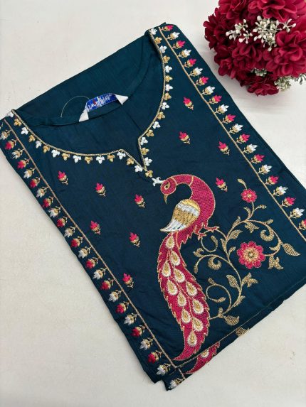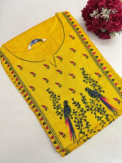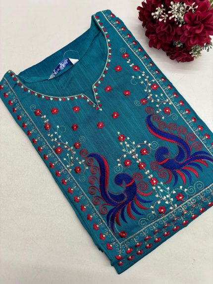 Slub Silk Embroidered Side Open Kurti Sleeve – 3/4th Sleeves Fabric: Slub Silk Top Length: 41 inches