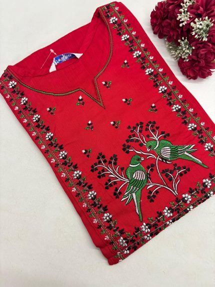 Slub Silk Embroidered Side Open Kurti Sleeve – 3/4th Sleeves Fabric: Slub Silk Top Length: 41 inches