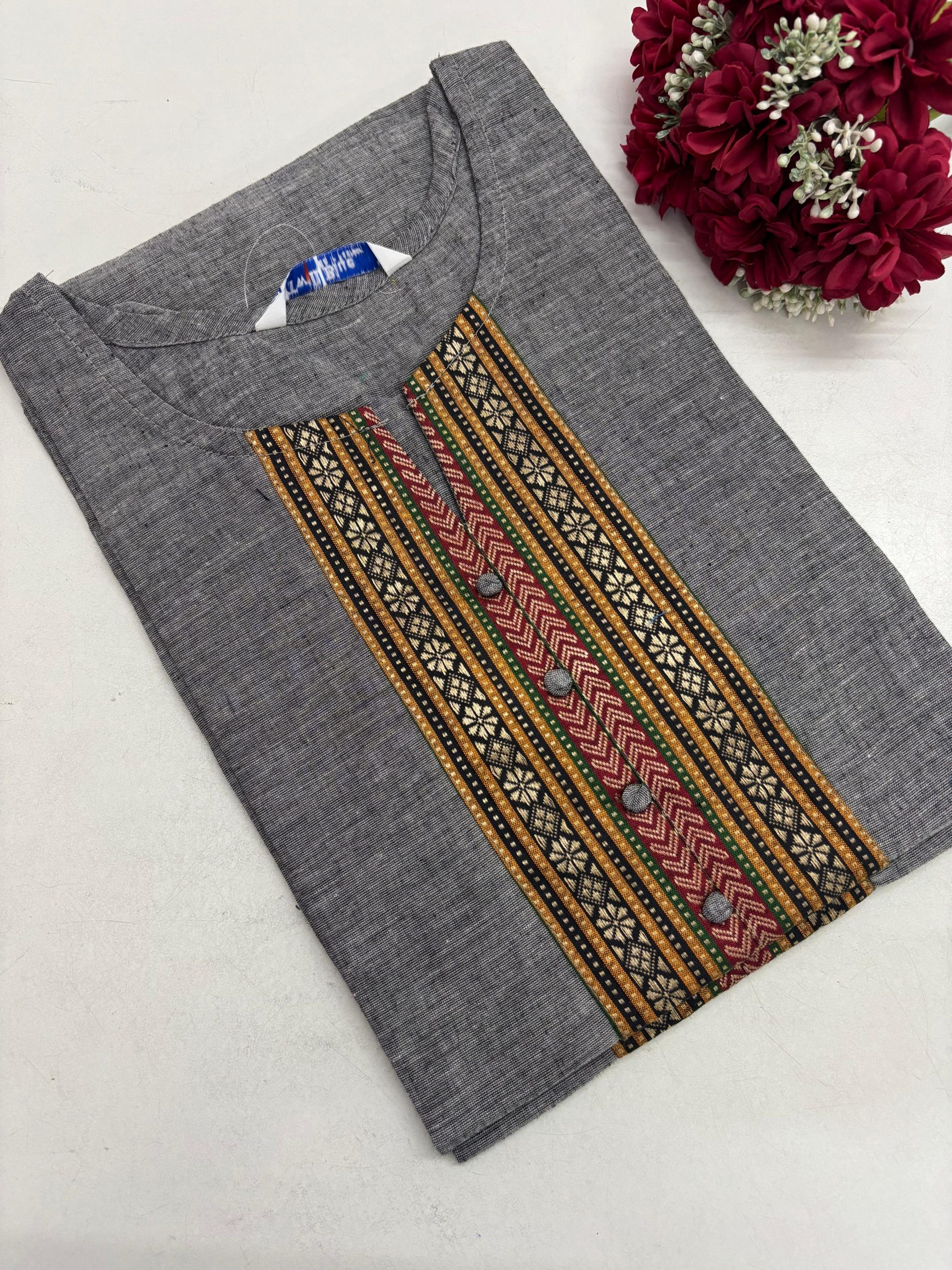 Slub Silk Embroidered Side Open Kurti Sleeve – 3/4th Sleeves Fabric: Slub Silk Top Length: 41 inches