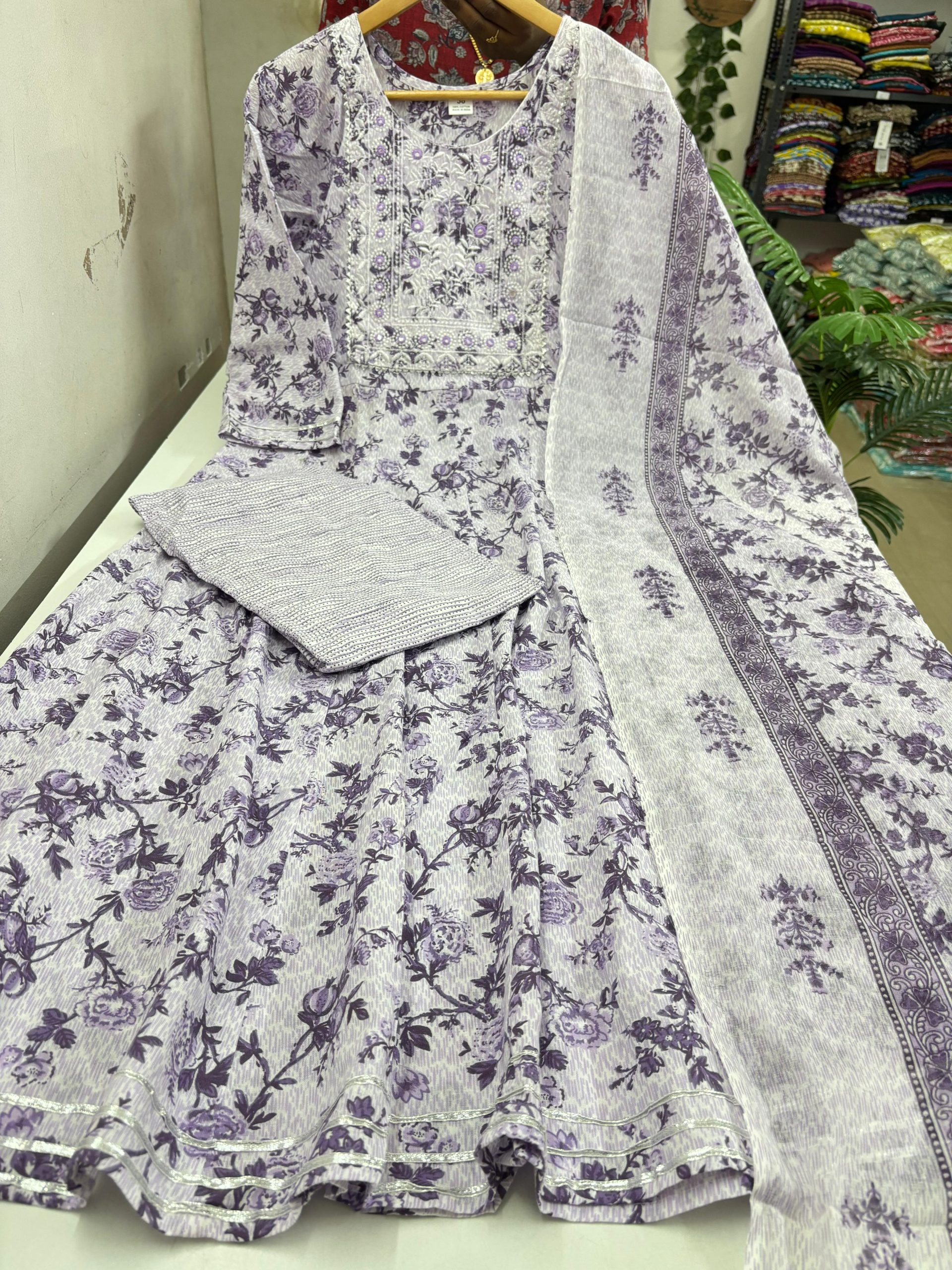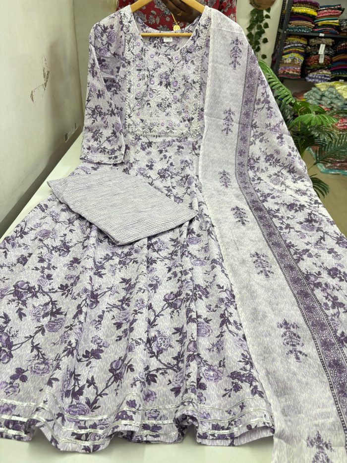 Cotton Anarkali Kurti With Pant & Dupatta Set