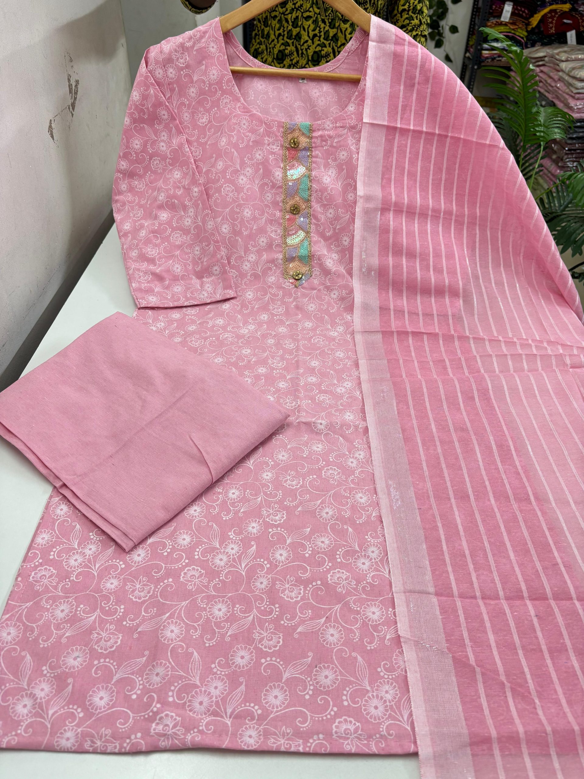 Cotton Kurti With Pant & Dupatta Set Fabric: Khadi Cotton Kurti Length : 41 Inches Pant Length : 39 Inches
