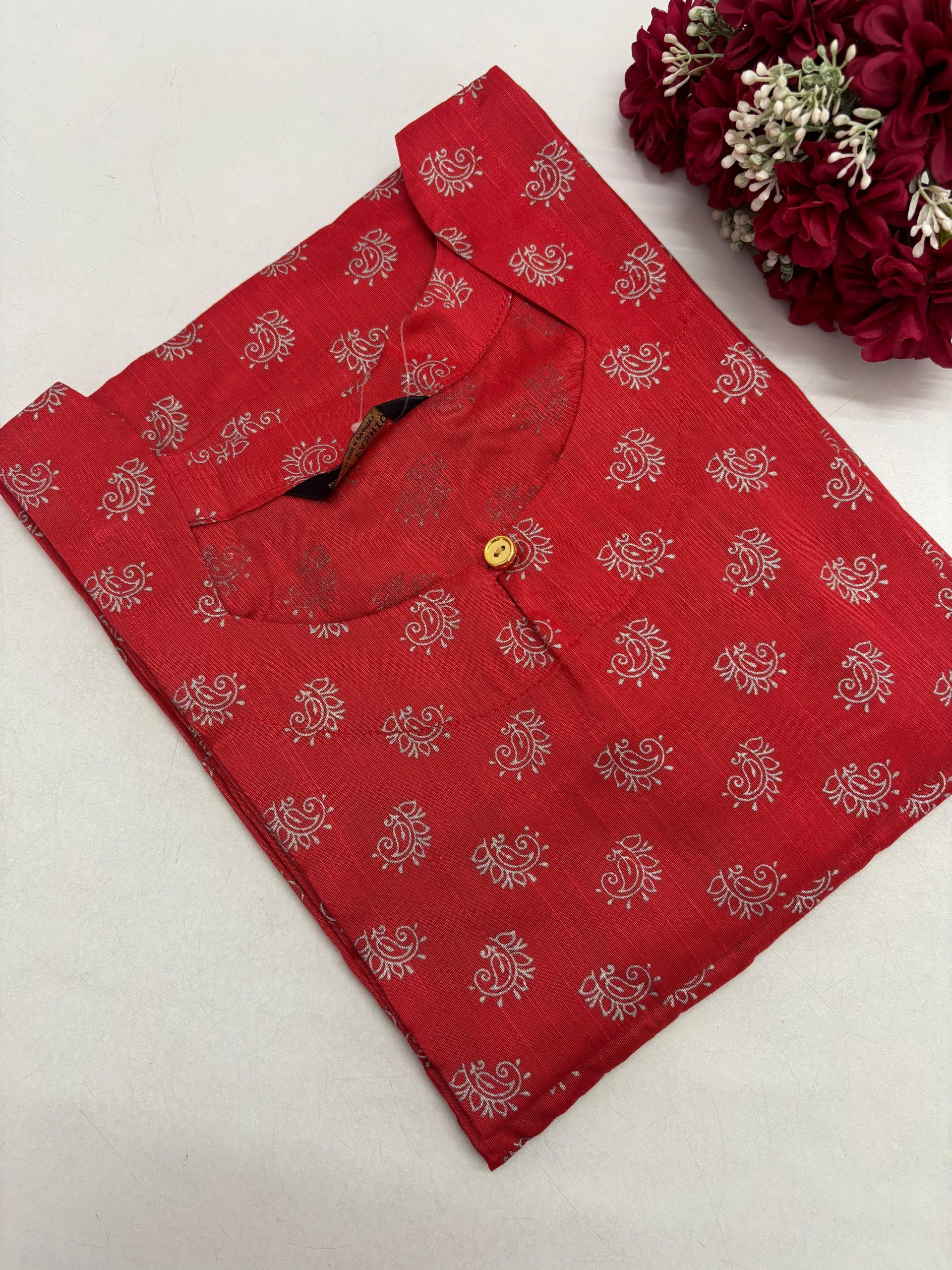 Festive Silk Printed Side Open Kurti With Pocket & beautiful neck design