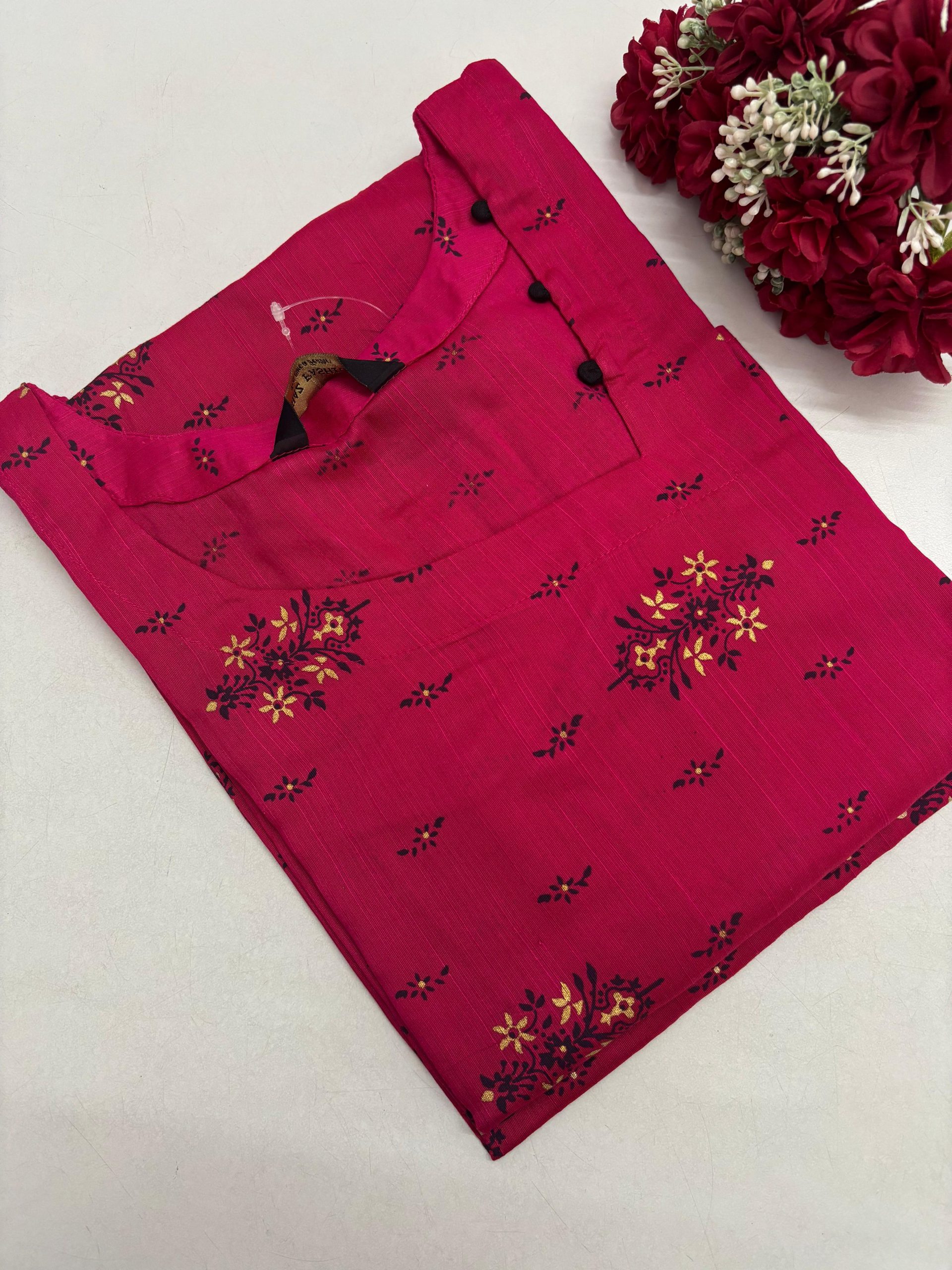 Festive Silk Printed Side Open Kurti With Pocket & beautiful neck design