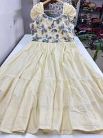 Hakoba A Line Frock With Puff Sleeves Beautiful Embroidery Thread Work On Yoke Portion Stitched With Cotton Lining Length: 44