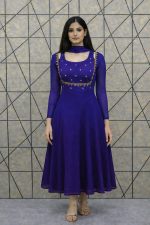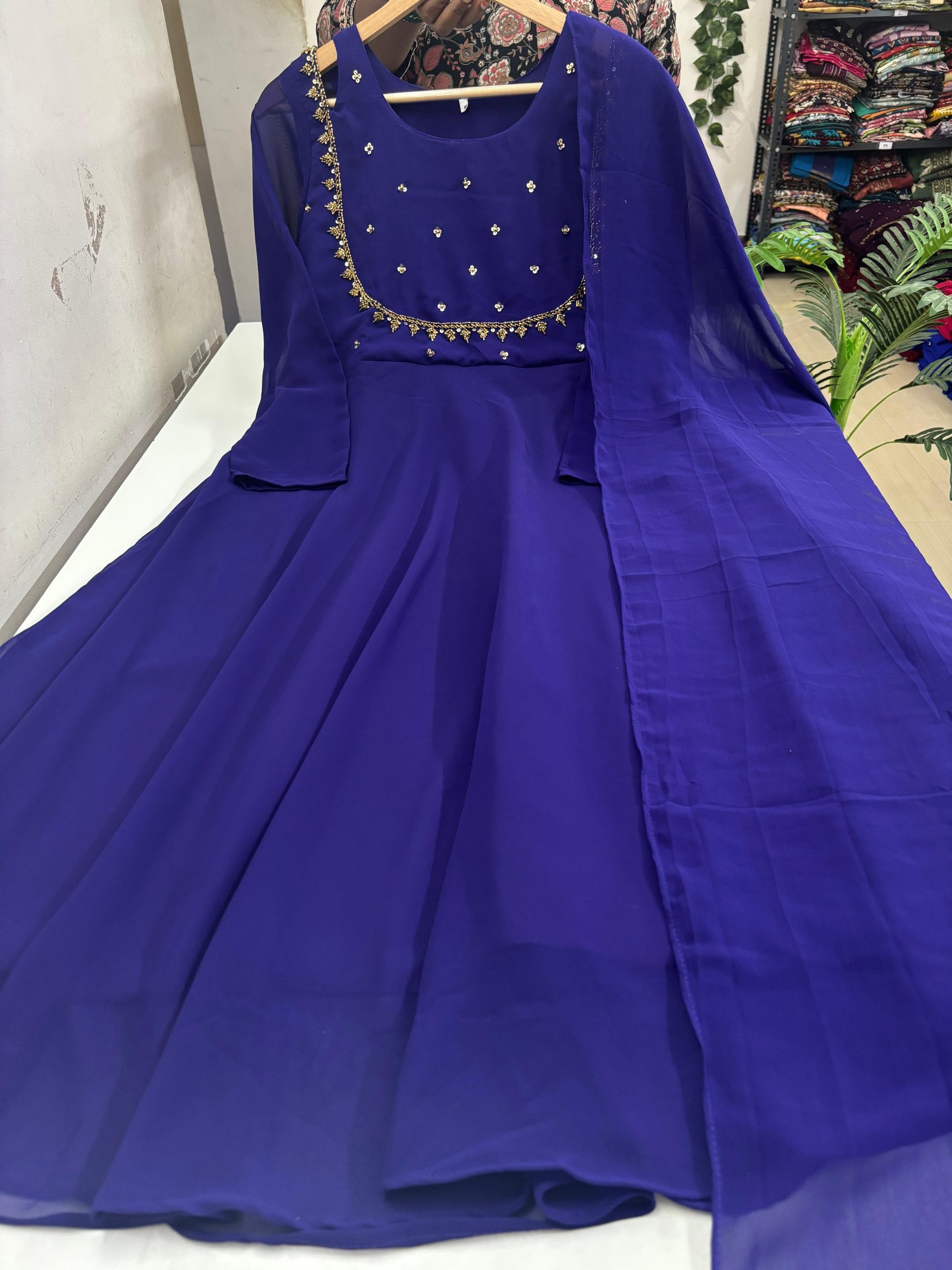 Georgette Flared Umbrella Kurti Dupatta Set-ROYAL BLUE