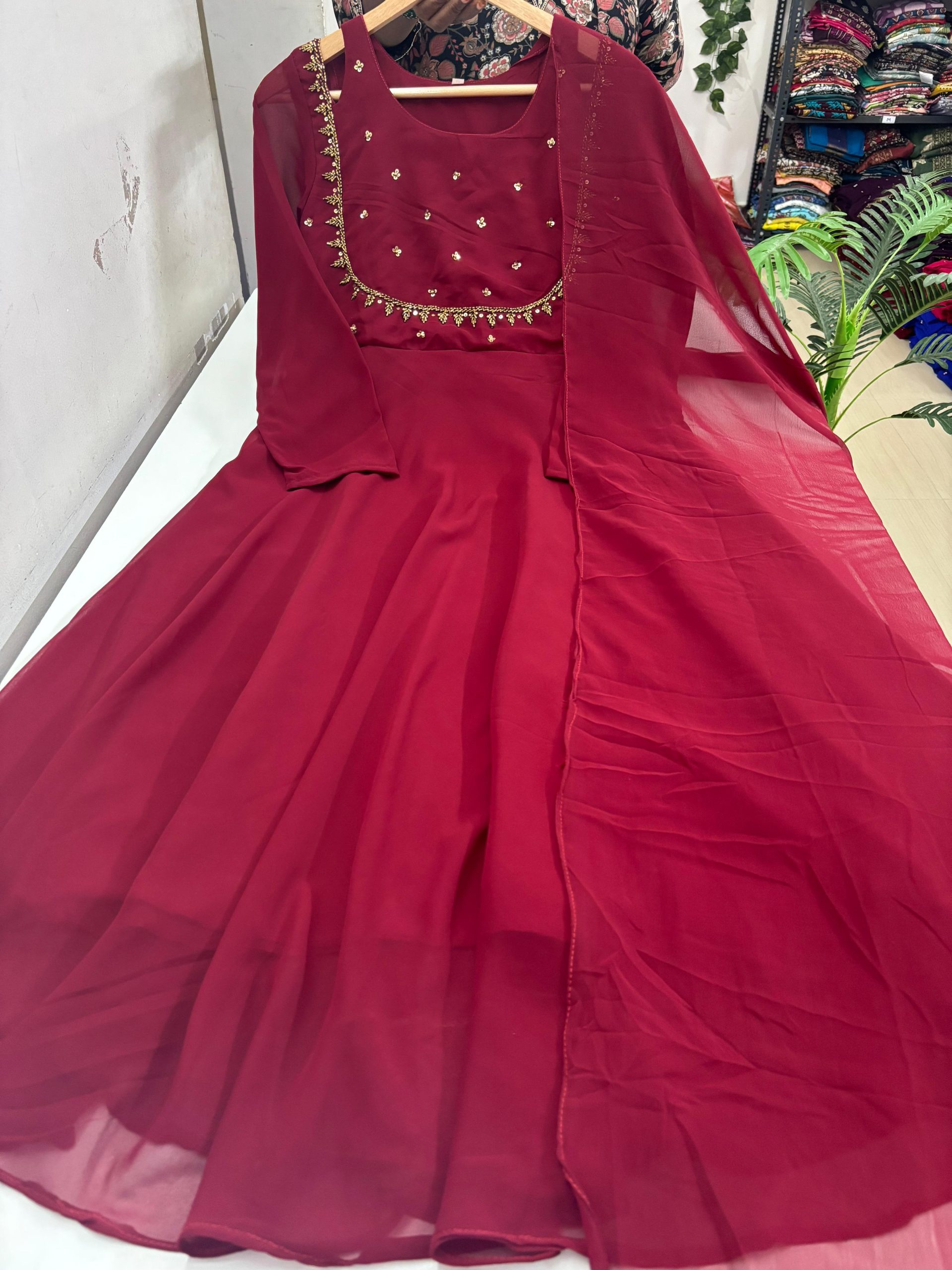 Be the first to review “Georgette Flared Umbrella Kurti Dupatta Set-MAROON” Cancel reply
