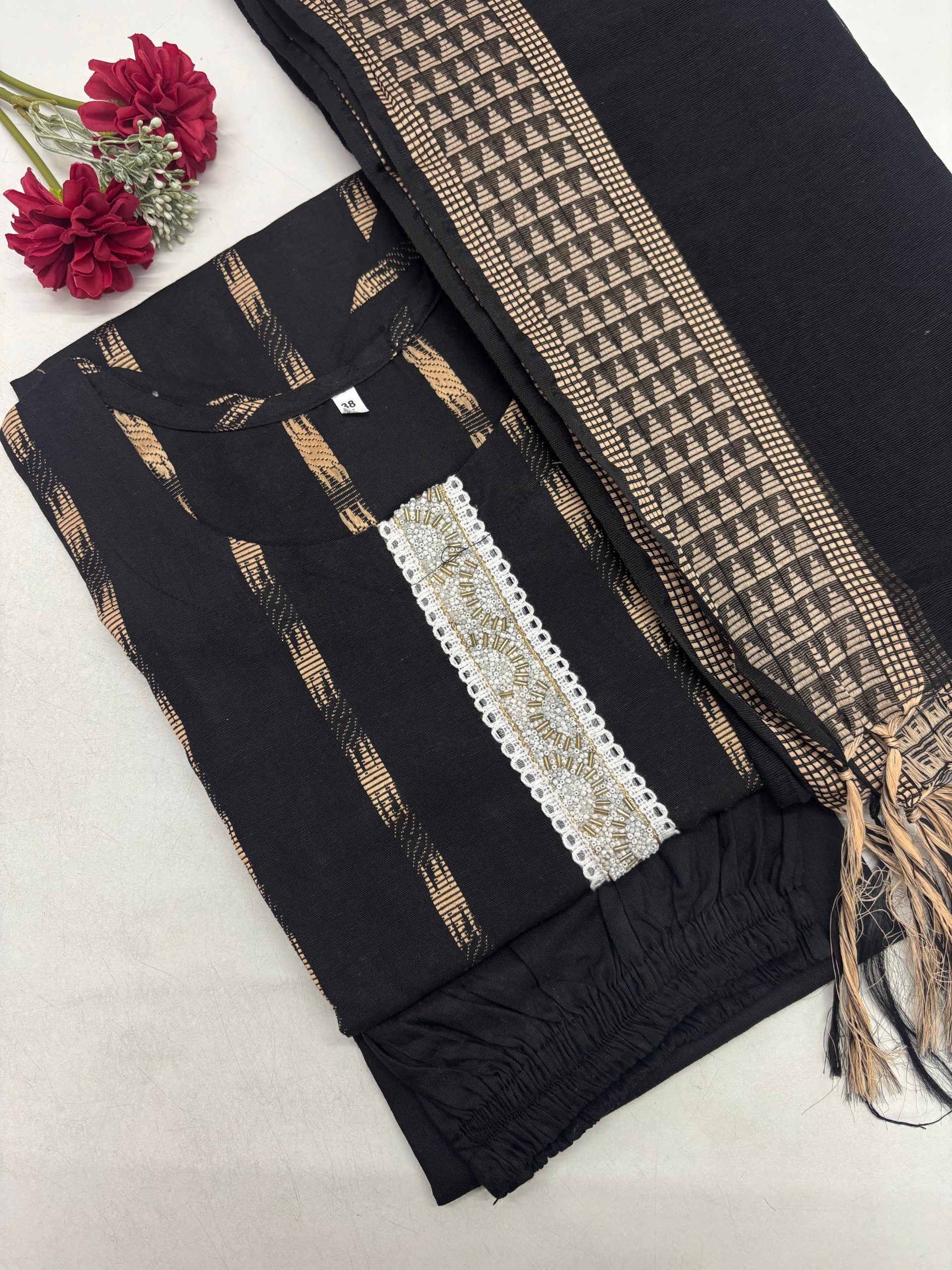 Handloom Cotton Kurti With Pant & Dupatta Set