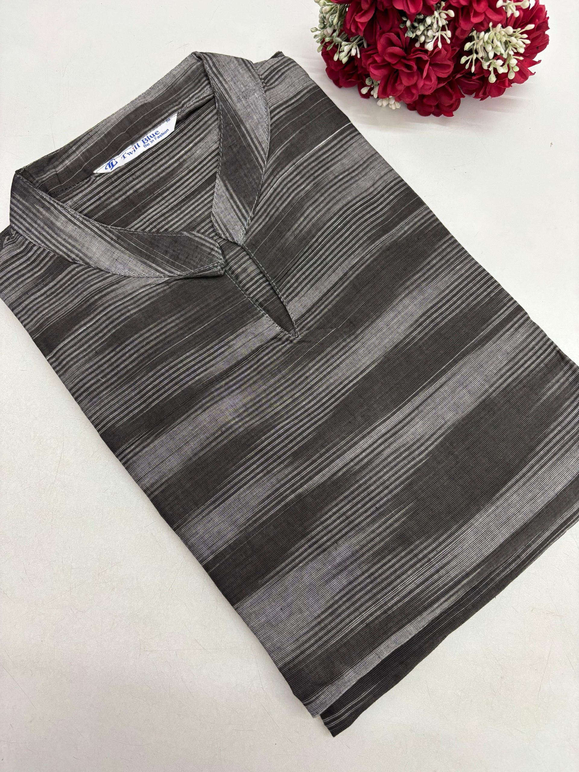 Handloom Cotton Embroidery Kurti – Grey & Blue Mixed