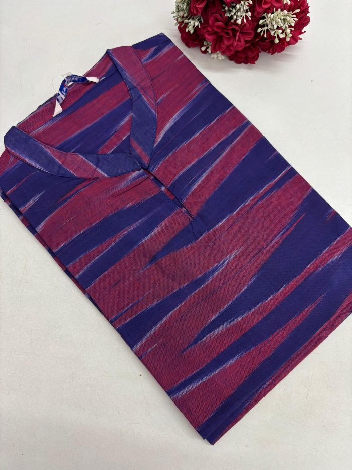 Premium Handloom Ikkat Cotton Side Open Kurti With Lining & Side Pocket Fabric: Handloom Cotton Lining Bio Washed Cotton Length: