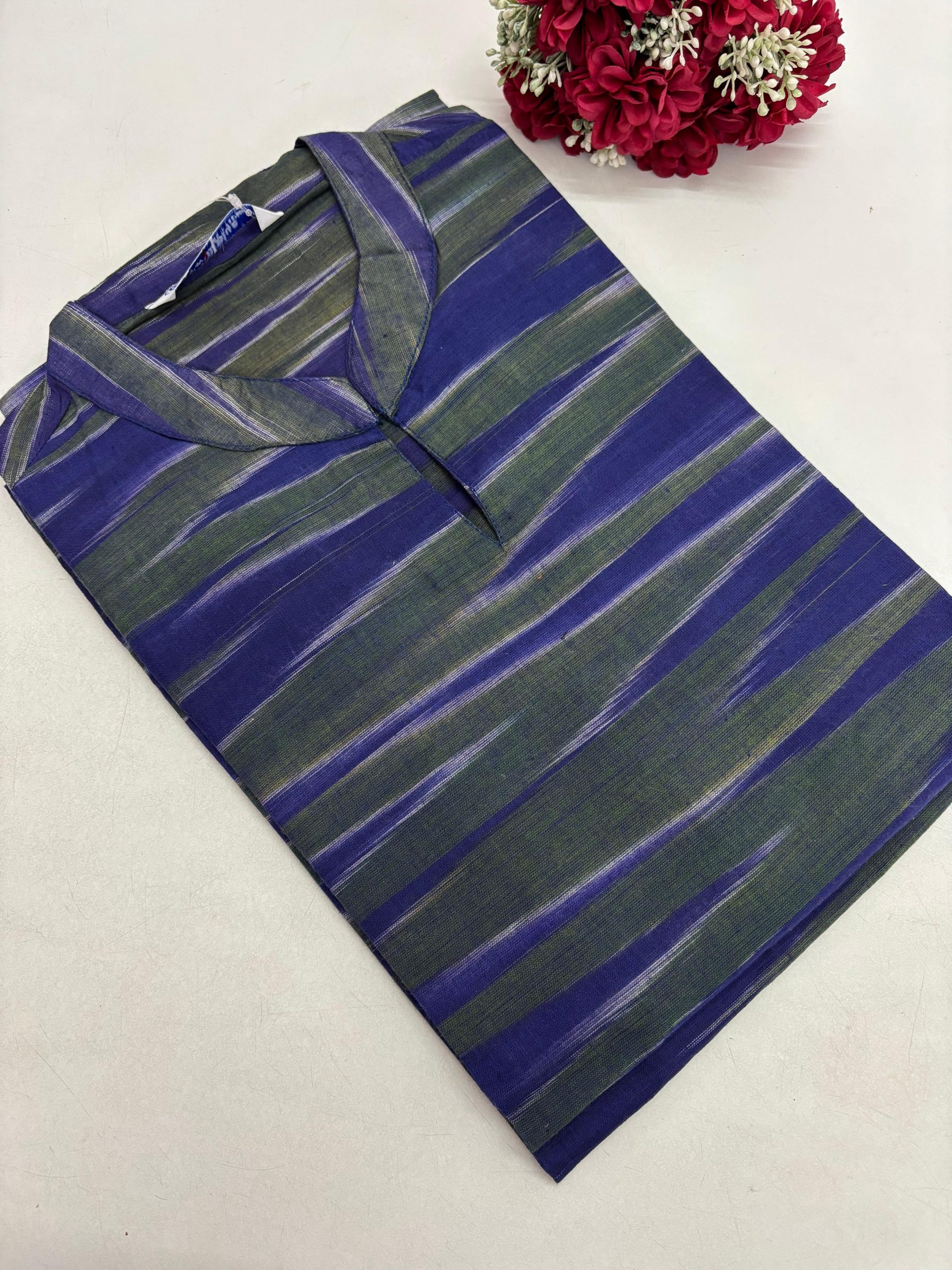 Premium Handloom Ikkat Cotton Side Open Kurti With Lining & Side Pocket Fabric: Handloom Cotton Lining Bio Washed Cotton Length: