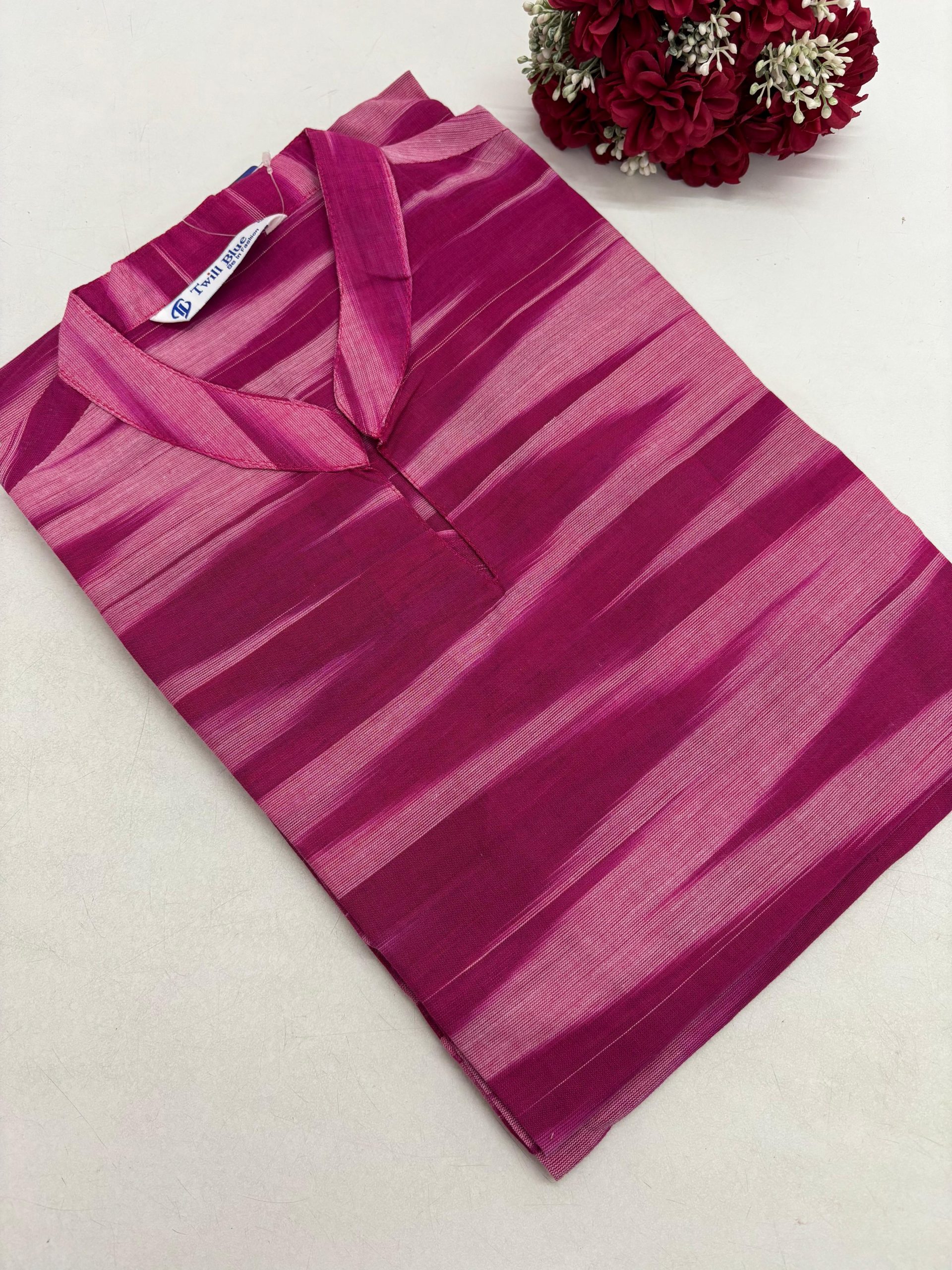 Premium Handloom Ikkat Cotton Side Open Kurti With Lining & Side Pocket Fabric: Handloom Cotton Lining Bio Washed Cotton Length: