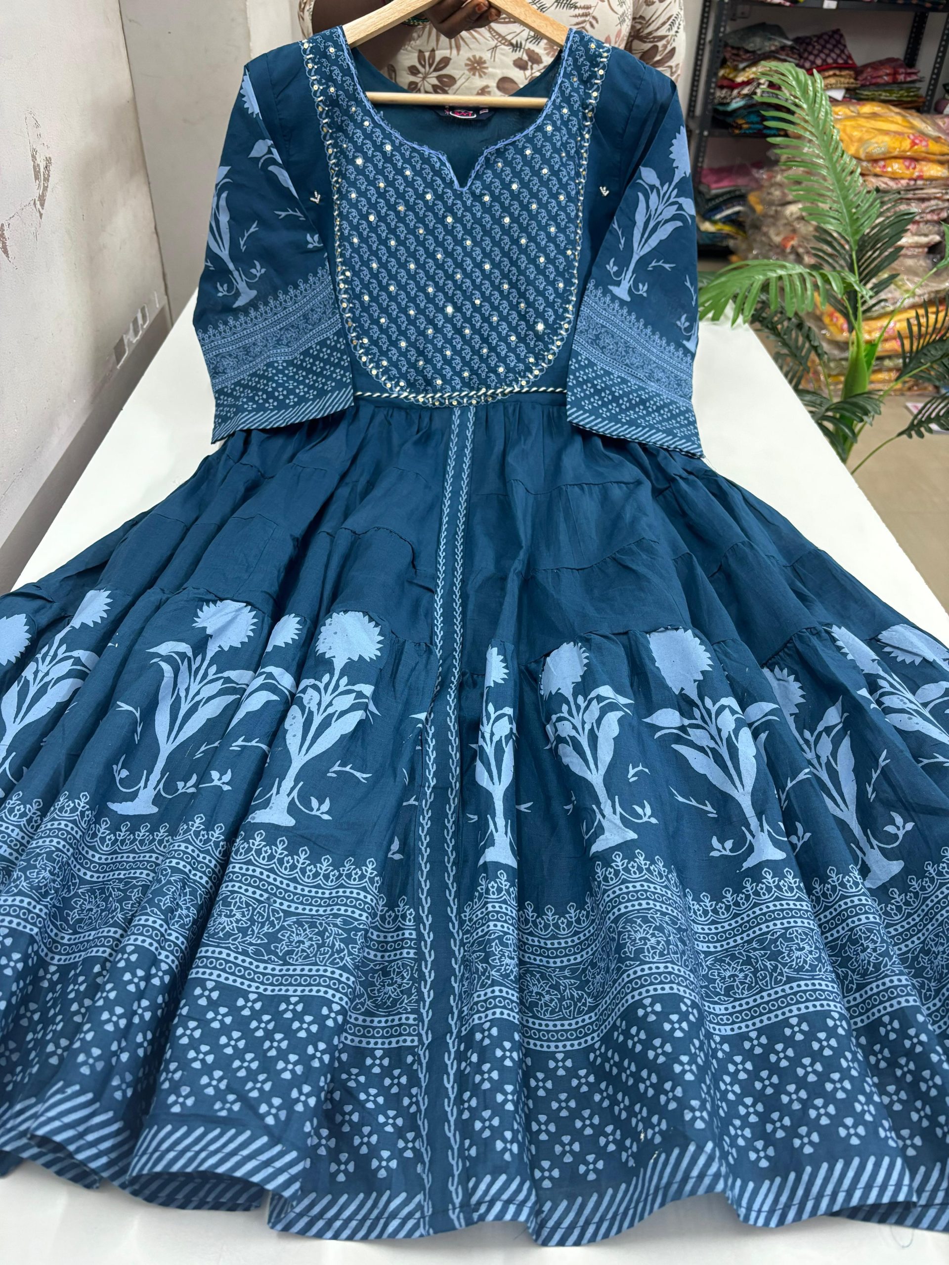 Kalamkari Style Mul Cotton Maxi With Lining Sleeve- 3/4th sleeves Fabric: Mul Cotton Length: 44 inches