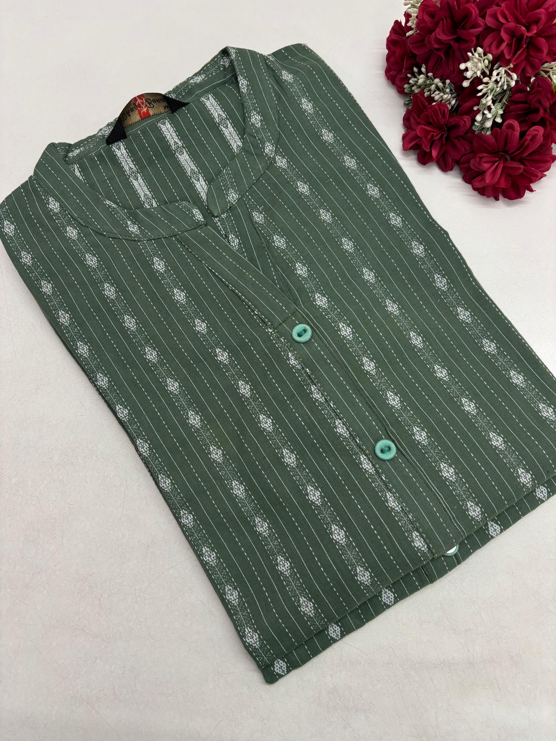 Office Wear Rayon Side Open Kurti Embroidery Work on the yoke portion Fabric : Rayon Length: 41 to 42 inches