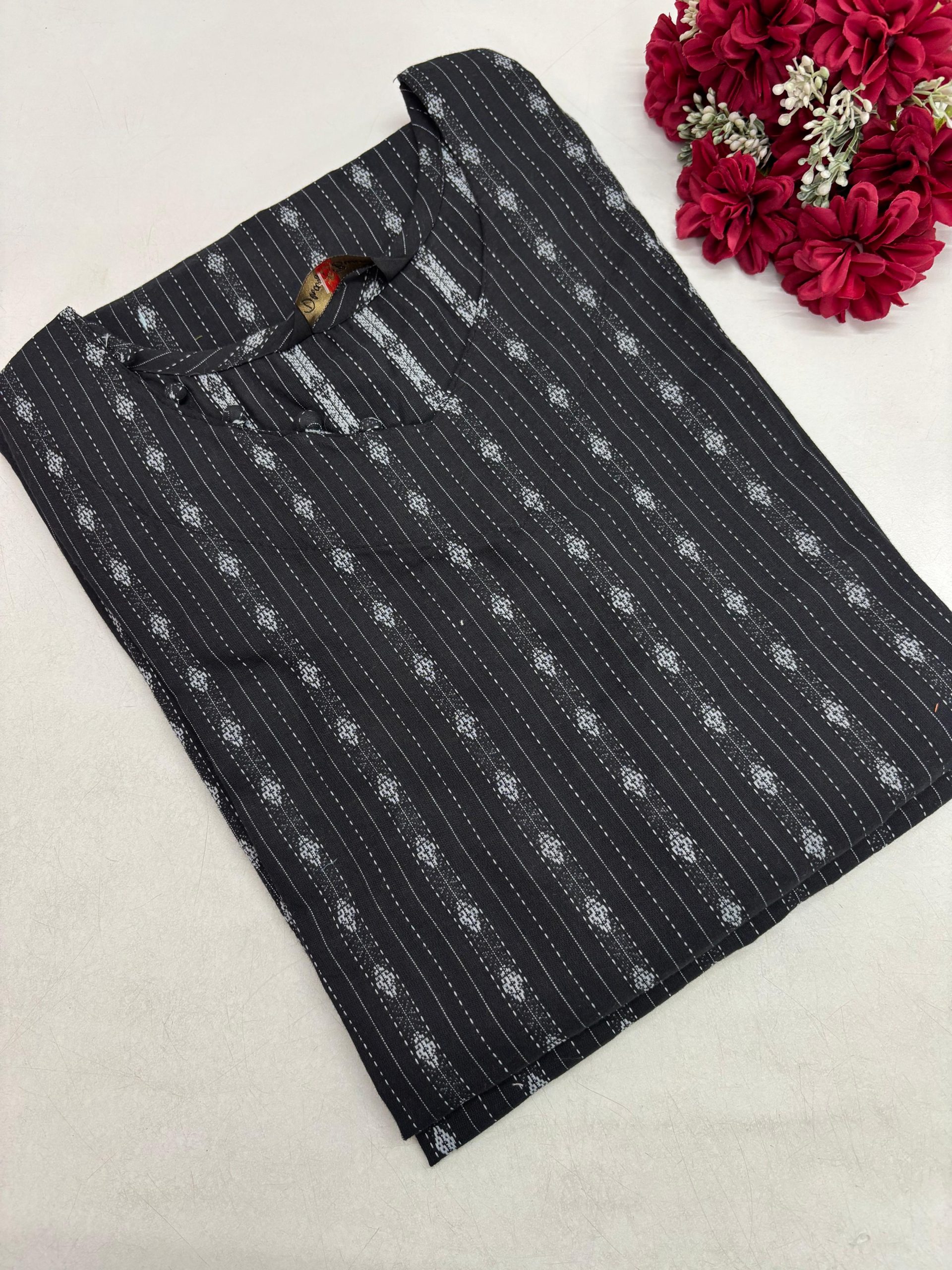 Kantha Stitch Cotton Side Open Kurti With Side pocket