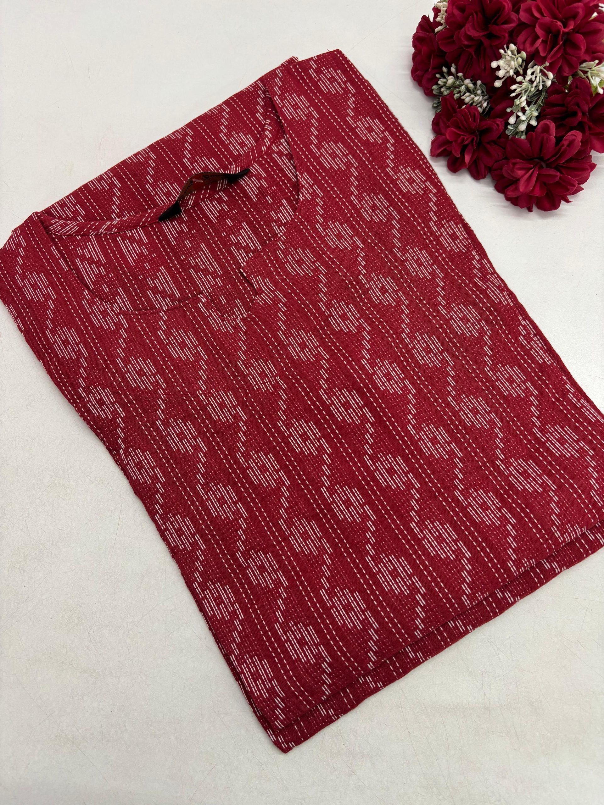 Kantha Stitch Cotton Side Open Kurti With Side pocket
