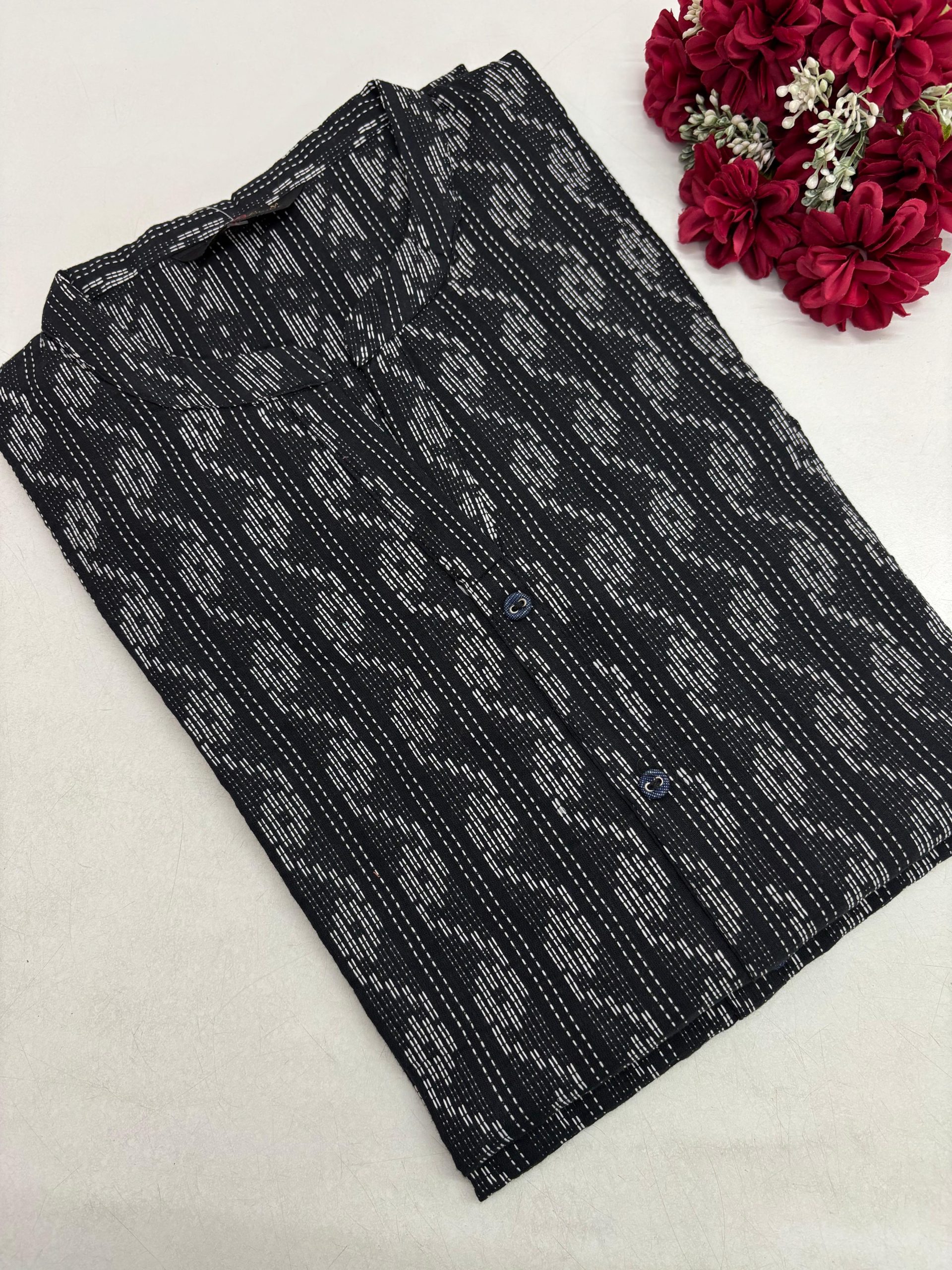 Kantha Stitch Cotton Side Open Kurti With Side pocket