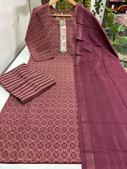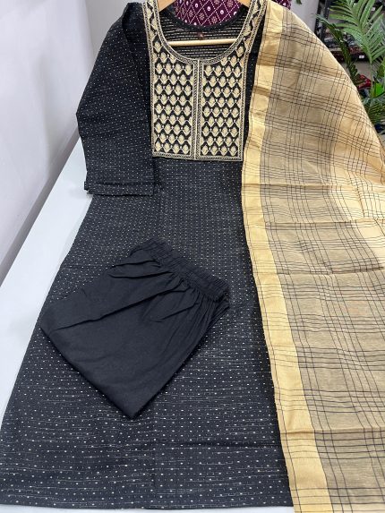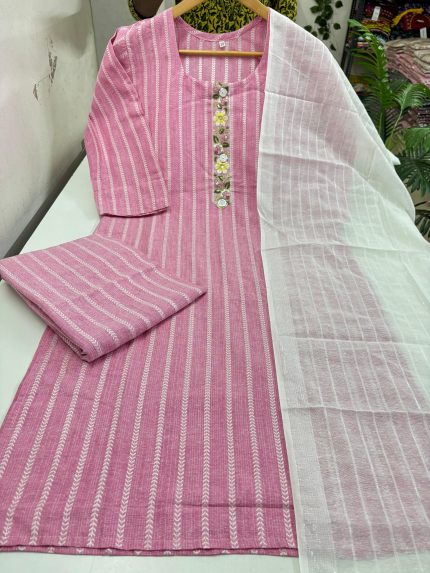 Cotton Kurti With Pant & Dupatta Set Fabric: Khadi Cotton Kurti Length : 41 Inches Pant Length : 38 Inches