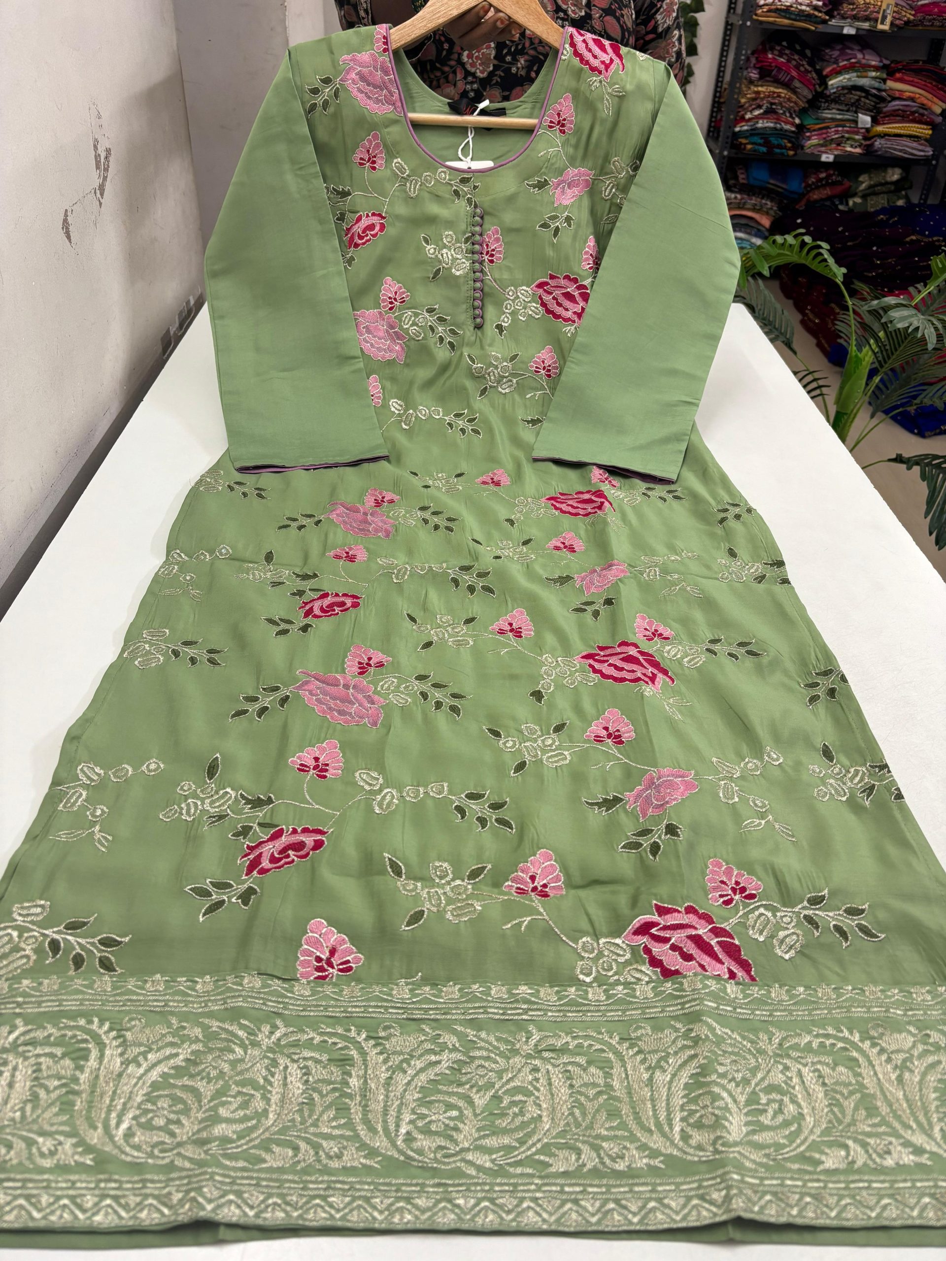 Premium Festive Wear Kurti With Pant & Dupatta Set With Lining Fabric: Shimmer Tissue Silk Kurti Length : 45 inches
