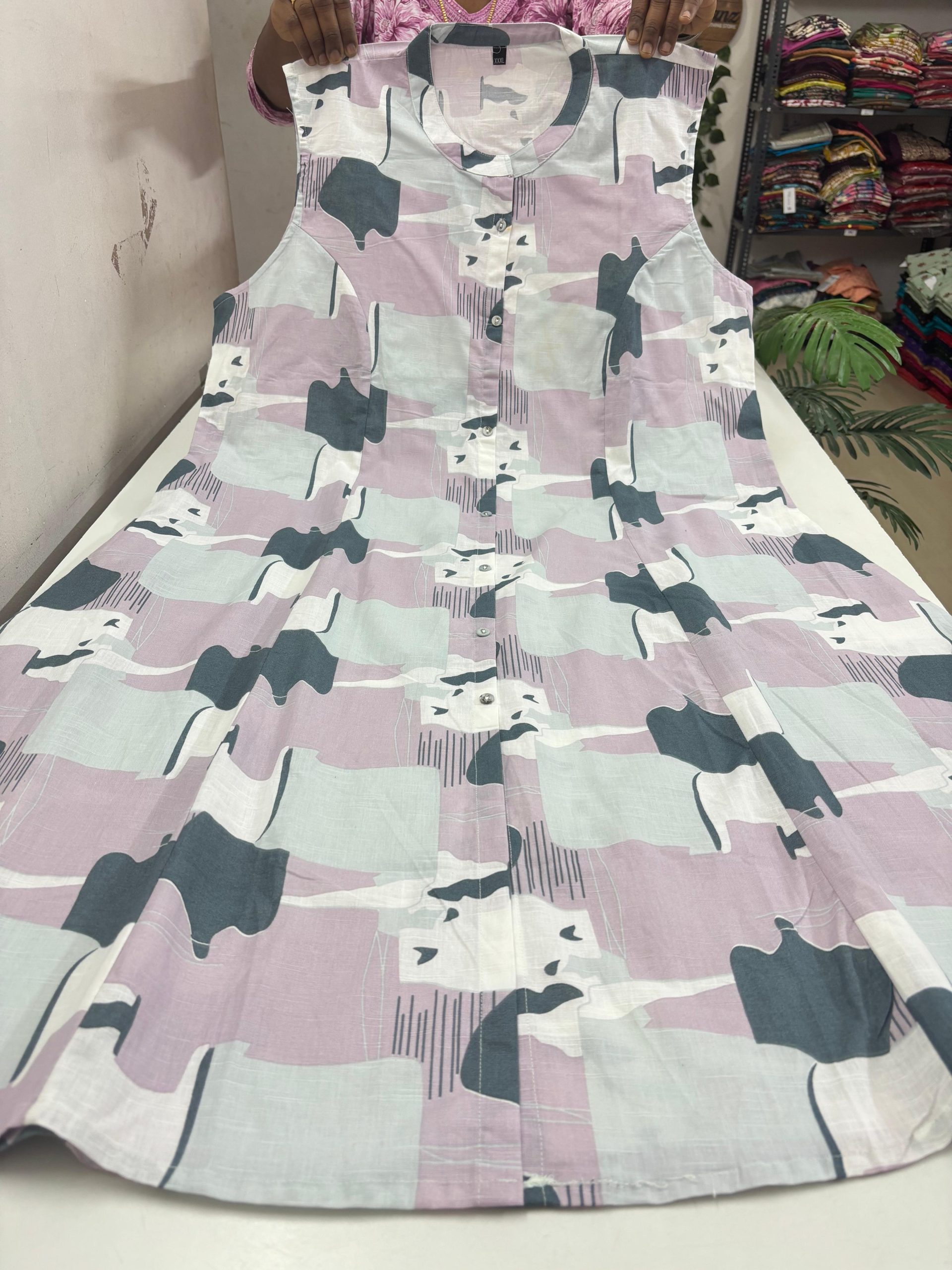Branded Linen Cotton princess cut Aline kurti with side pocket