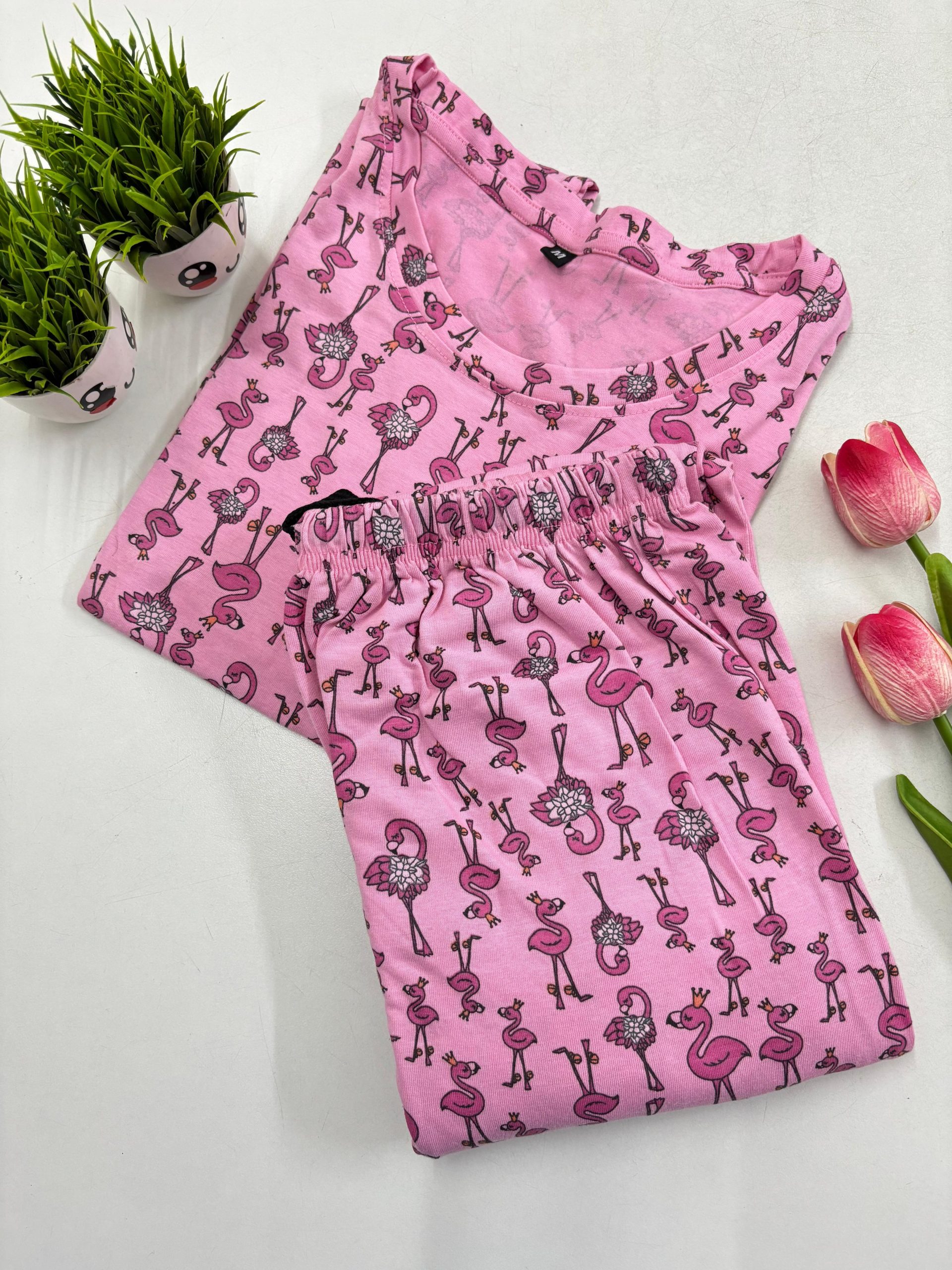 Women’s knitted cotton T-shirt with night pant T-shirt length – 25-26.5inchs. Chest Size chart M-36 inches L- 38 inches Xl