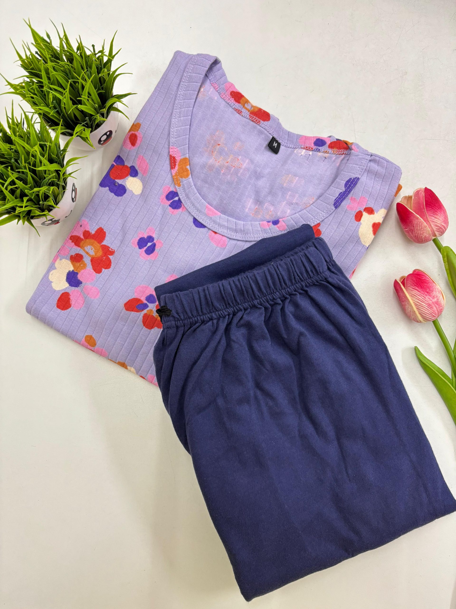Women’s knitted cotton T-shirt with night pant T-shirt length – 25-26.5inchs. Chest Size chart M-36 inches L- 38 inches Xl