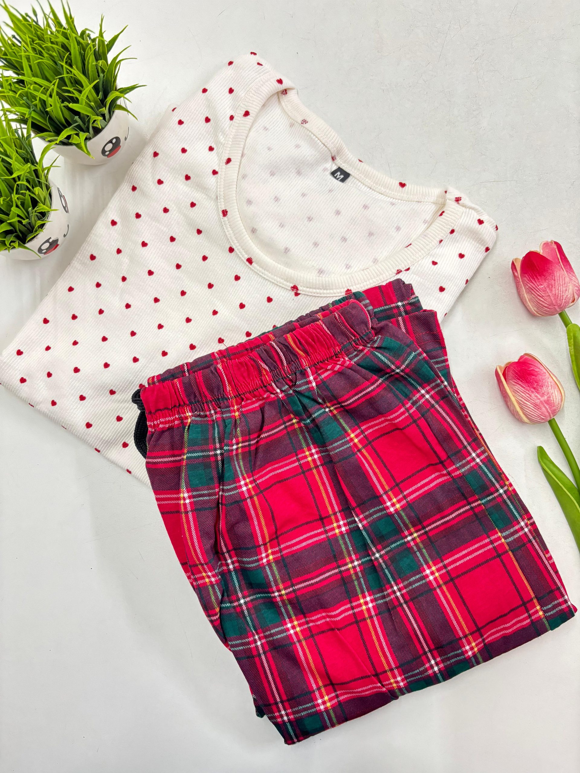 Women’s knitted cotton T-shirt with night pant T-shirt length – 25-26.5inchs. Chest Size chart M-36 inches L- 38 inches Xl
