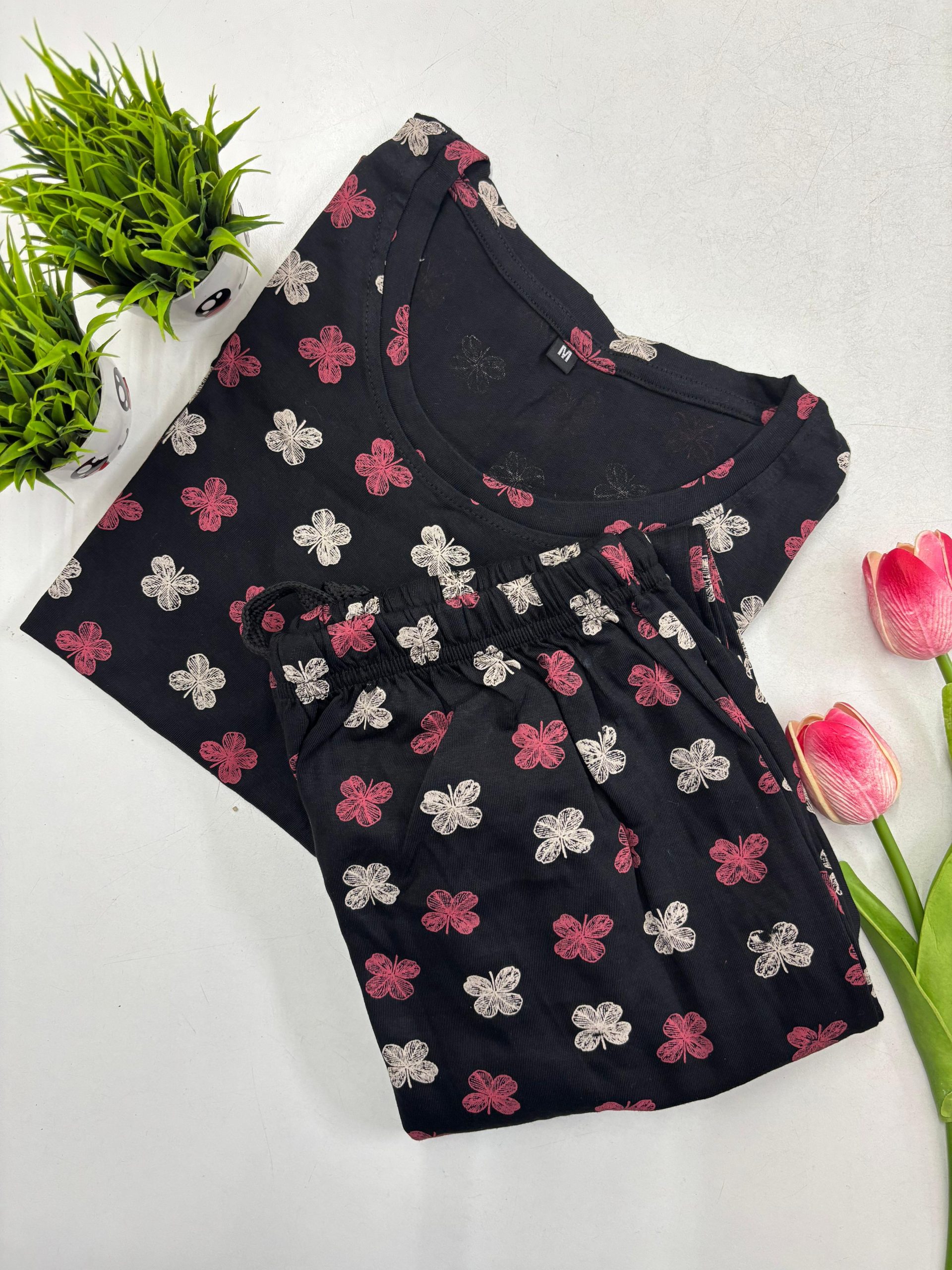 Women’s knitted cotton T-shirt with night pant T-shirt length – 25-26.5inchs. Chest Size chart M-36 inches L- 38 inches Xl