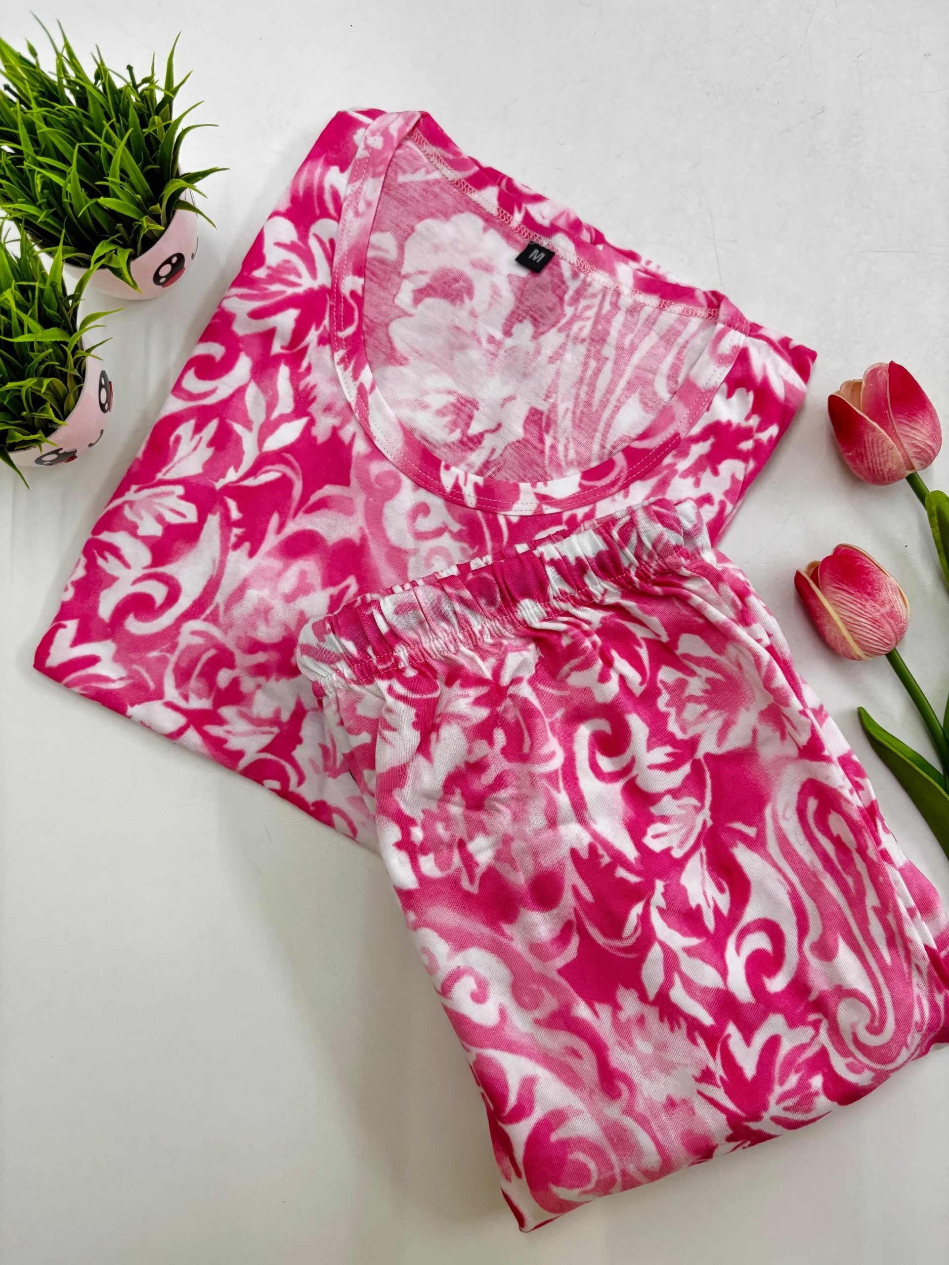 Women’s knitted cotton T-shirt with night pant T-shirt length – 25-26.5inchs. Chest Size chart M-36 inches L- 38 inches Xl