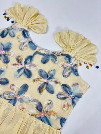 Hakoba A Line Frock With Puff Sleeves Beautiful Embroidery Thread Work On Yoke Portion Stitched With Cotton Lining Length: 44
