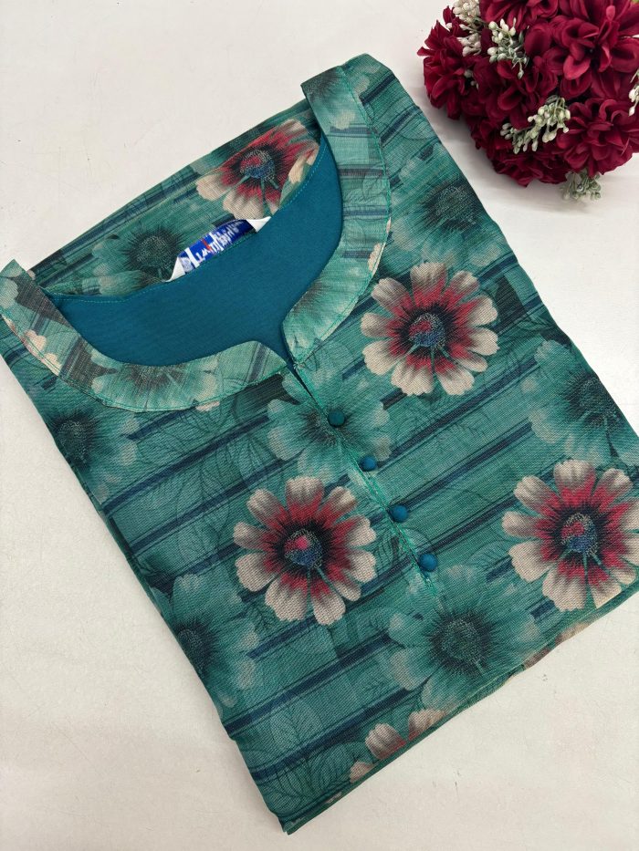 Premium Side Open Kurti With Lining Fabric: Roman Silk Sleeves: 3/4th Sleeve Kurti Length: 40 to 41 inches Size Chart