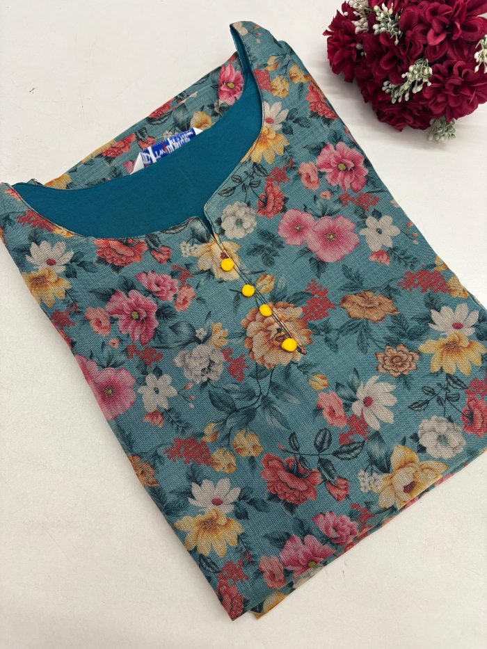 Premium Handloom Cotton Embroidery Side Open Kurti With Side Pocket Fabric: Handloom Cotton Length: 40 inches