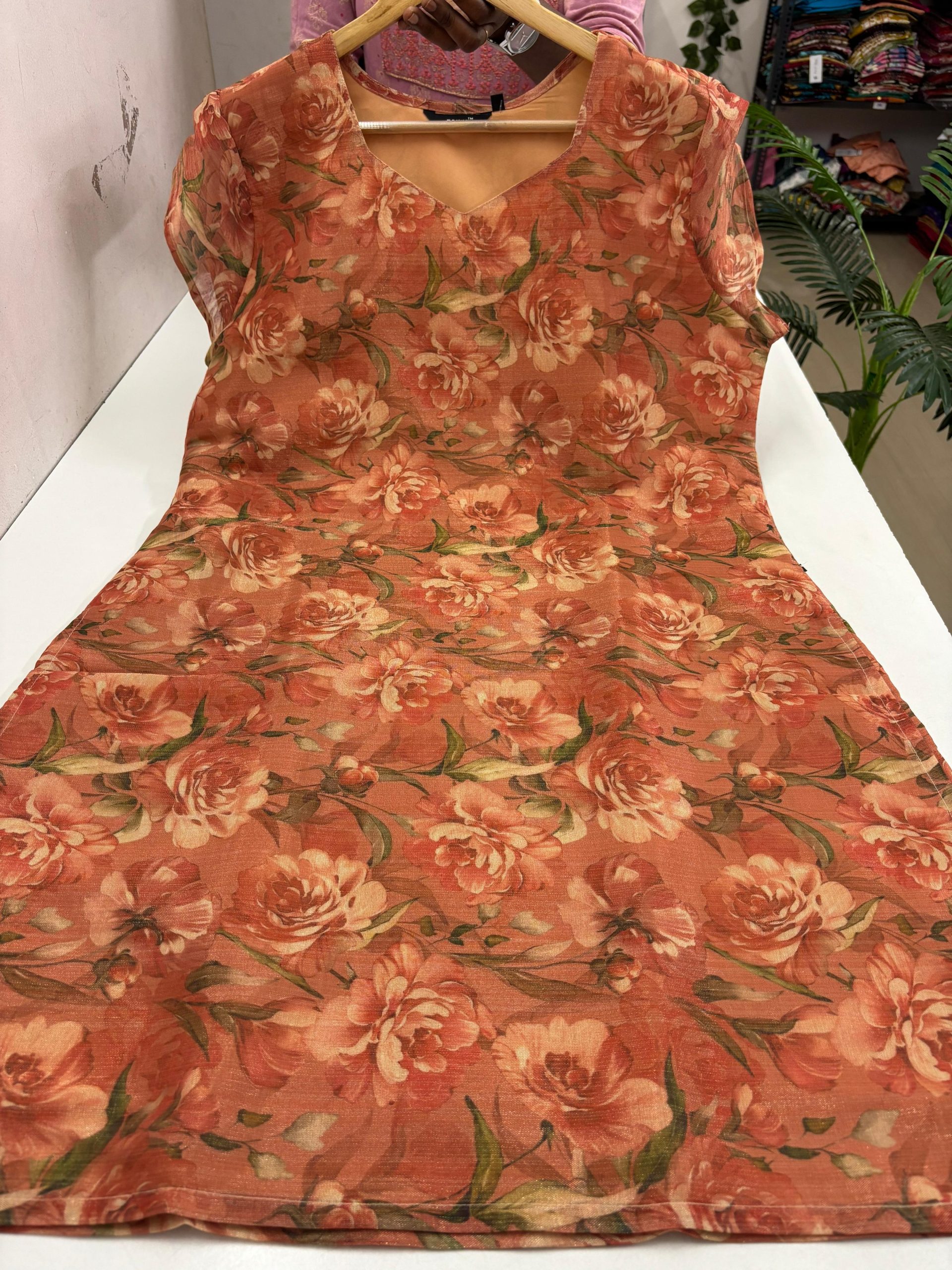Premium Digital Printed Tissue Silk Side Open Kurti