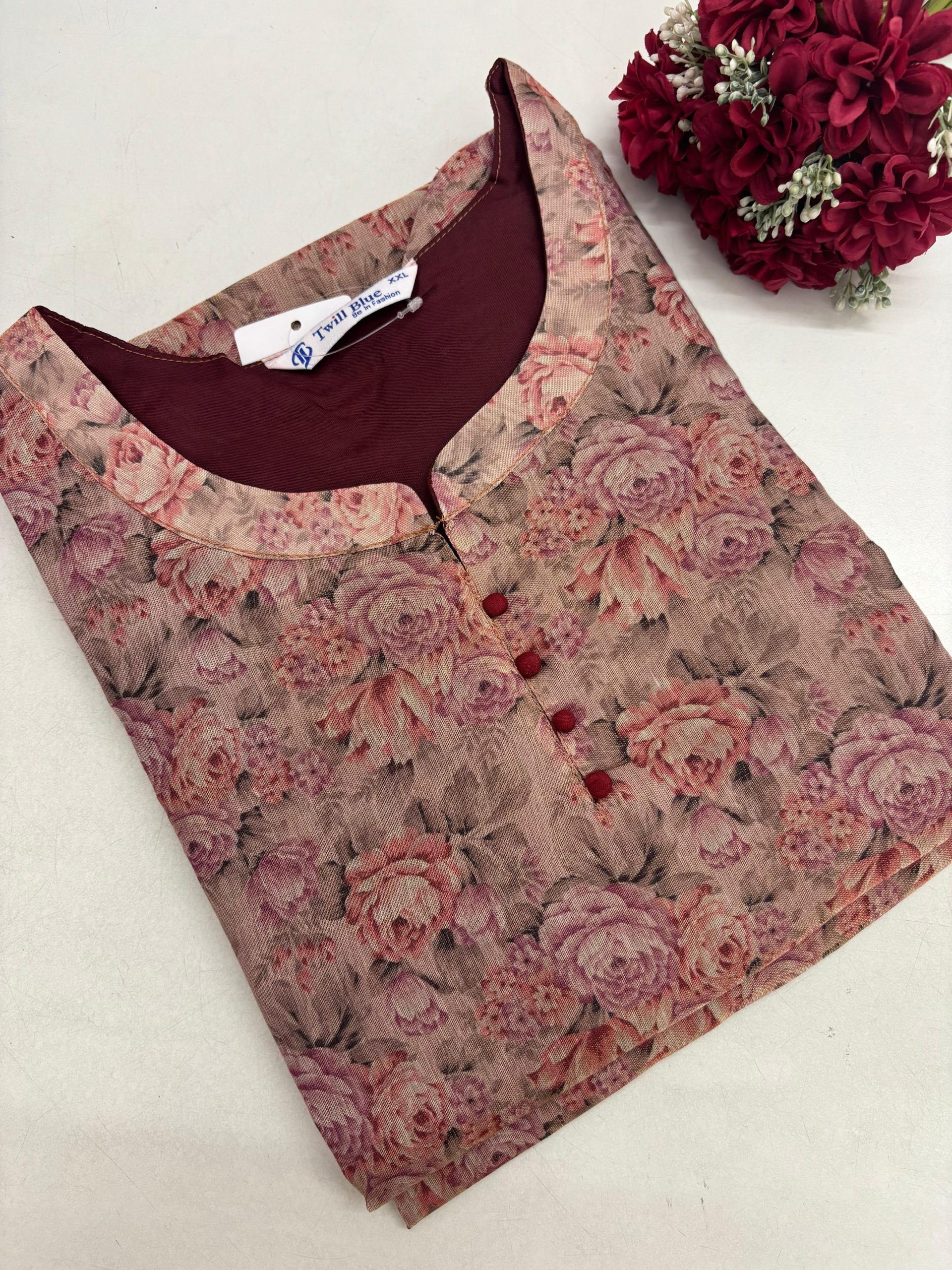 Premium Digital Printed Tissue Silk Side Open Kurti