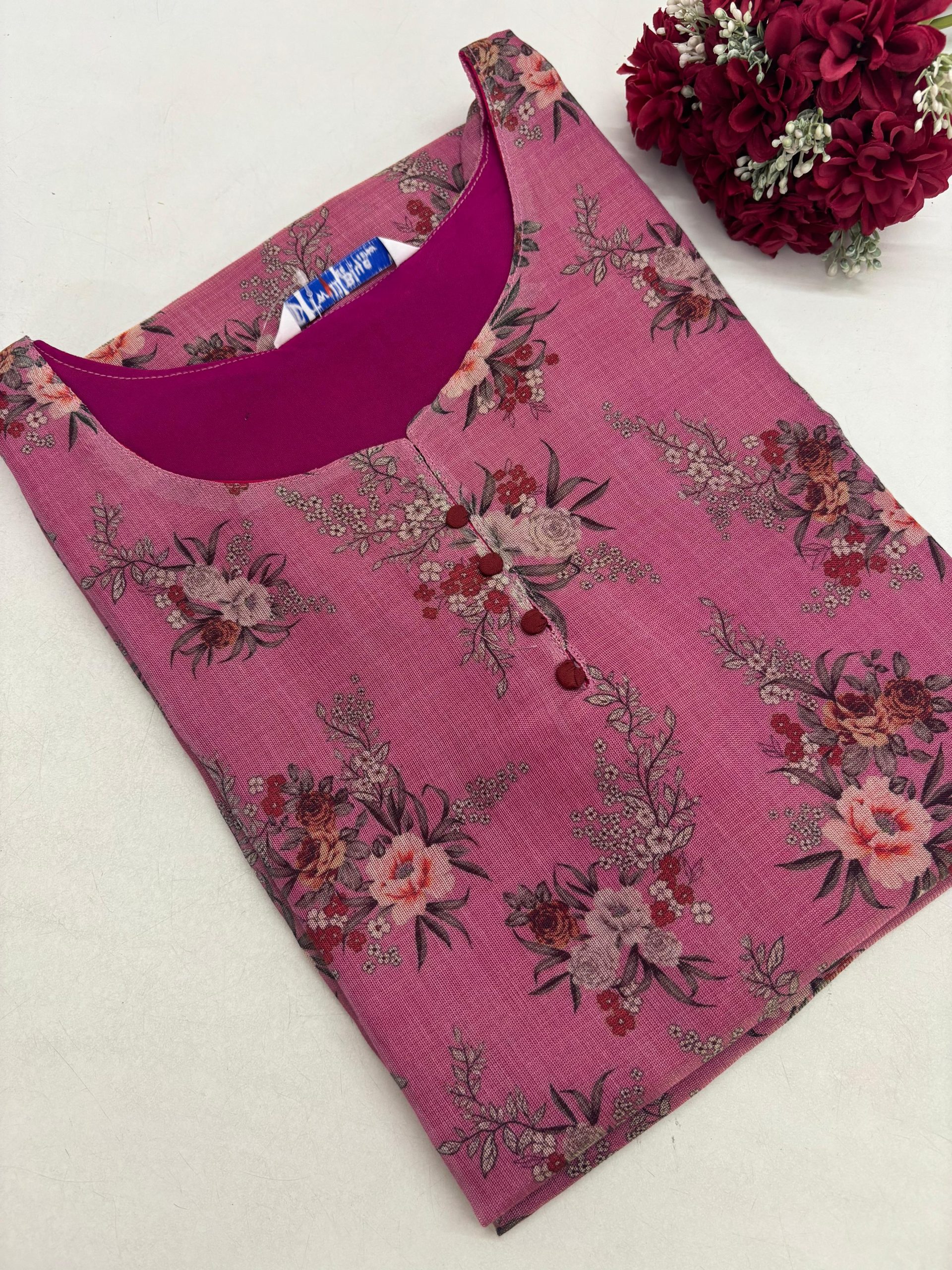 Premium Handloom Cotton Embroidery Side Open Kurti With Side Pocket Fabric: Handloom Cotton Length: 40 inches