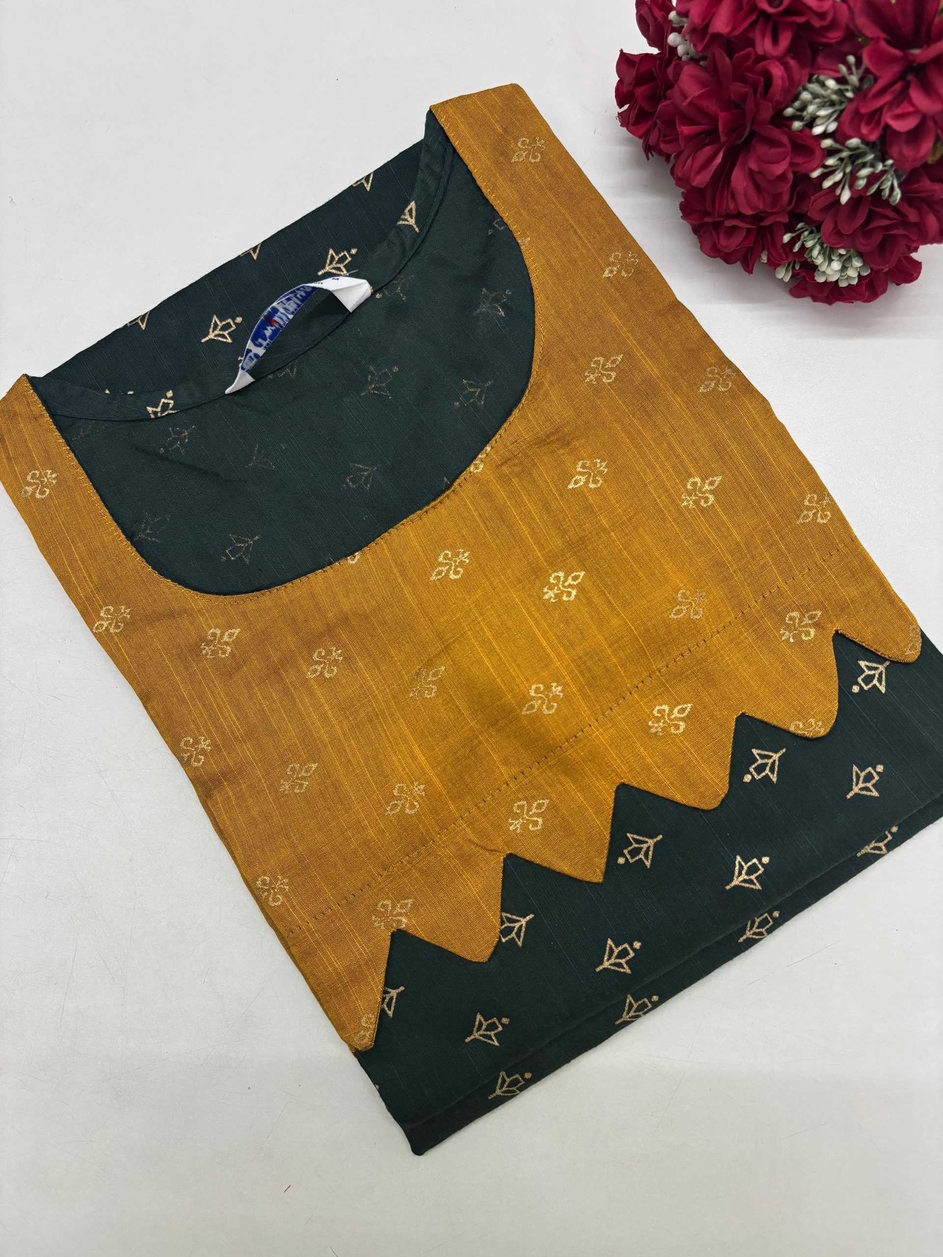 Festive Wear Printed Silk Side Open Kurti With Pocket & beautiful neck design