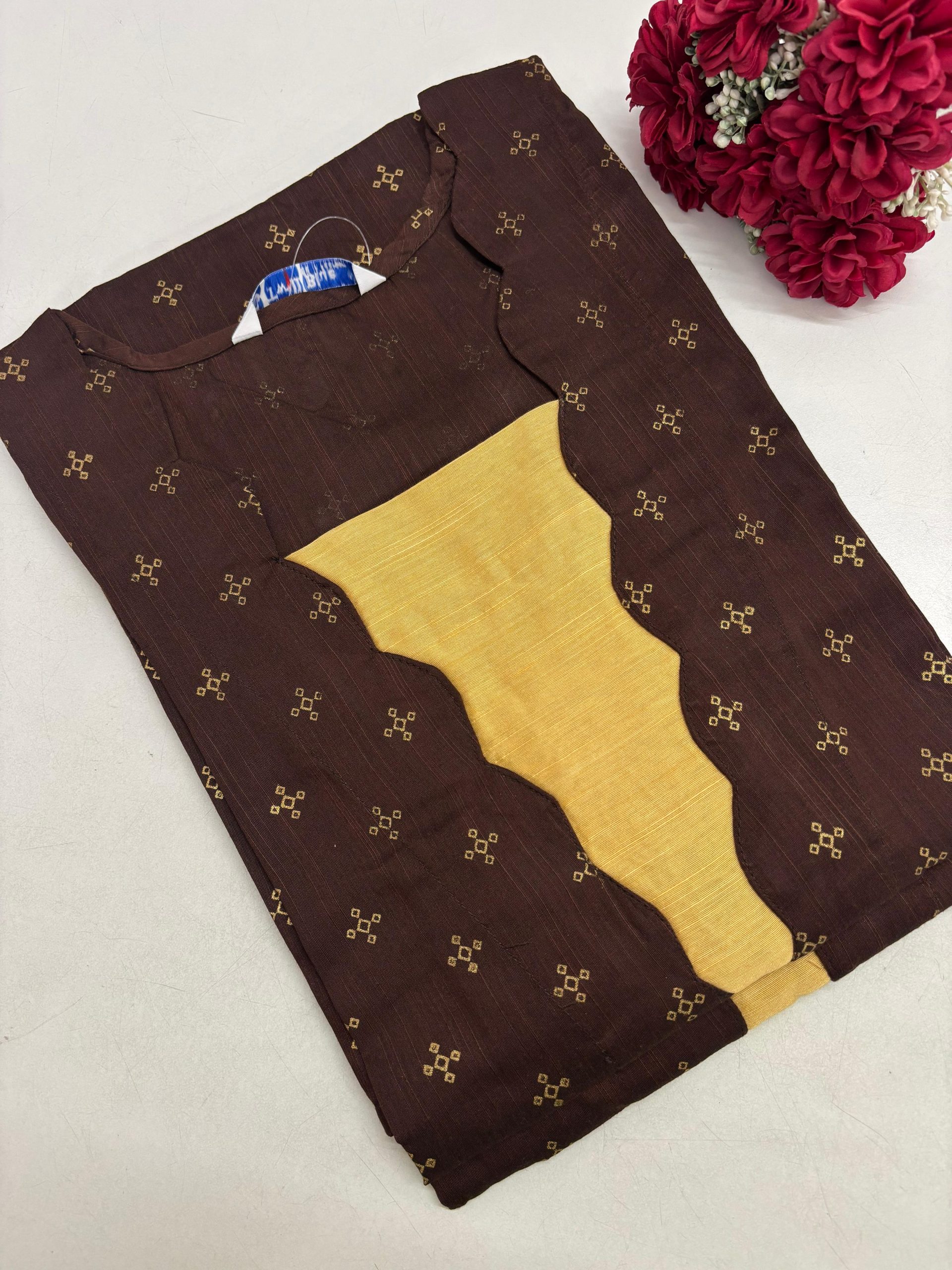 Festive Wear Printed Silk Side Open Kurti With Pocket & beautiful neck design