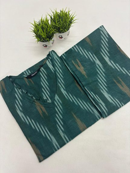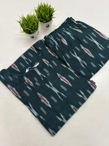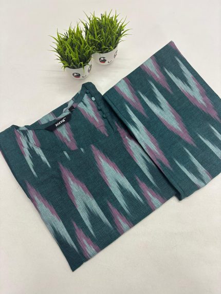Premium Ikkat Cotton Co-ord Set With Side Pocket Fabric: Cotton Top Model- Side Open Pant : Straight Cut Top Length: