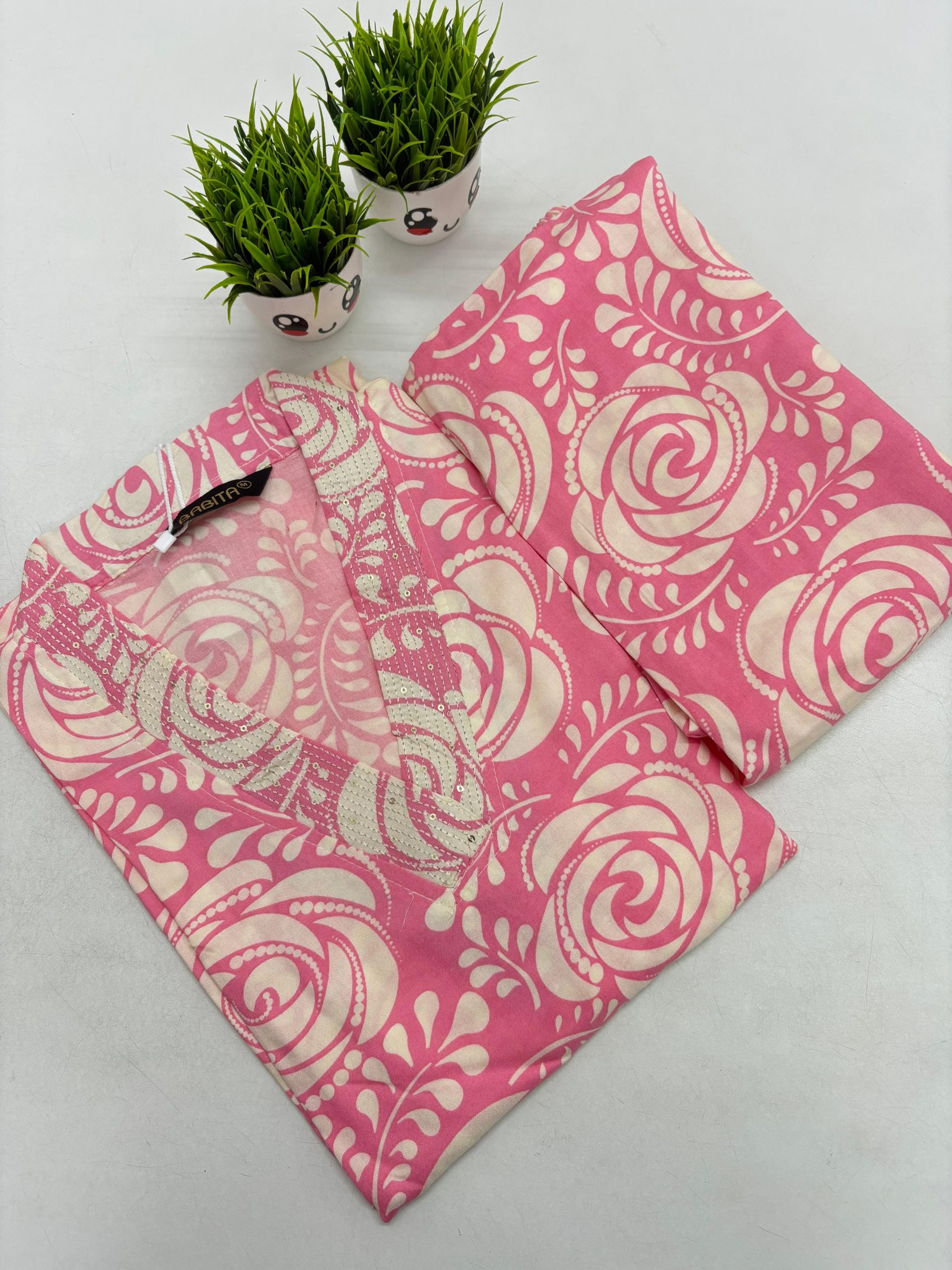 Cotton Co-ord Set Fabric: Cotton Top Model : Side Open Top Length: 44 Inches Pant Length: 35 to 36 inches
