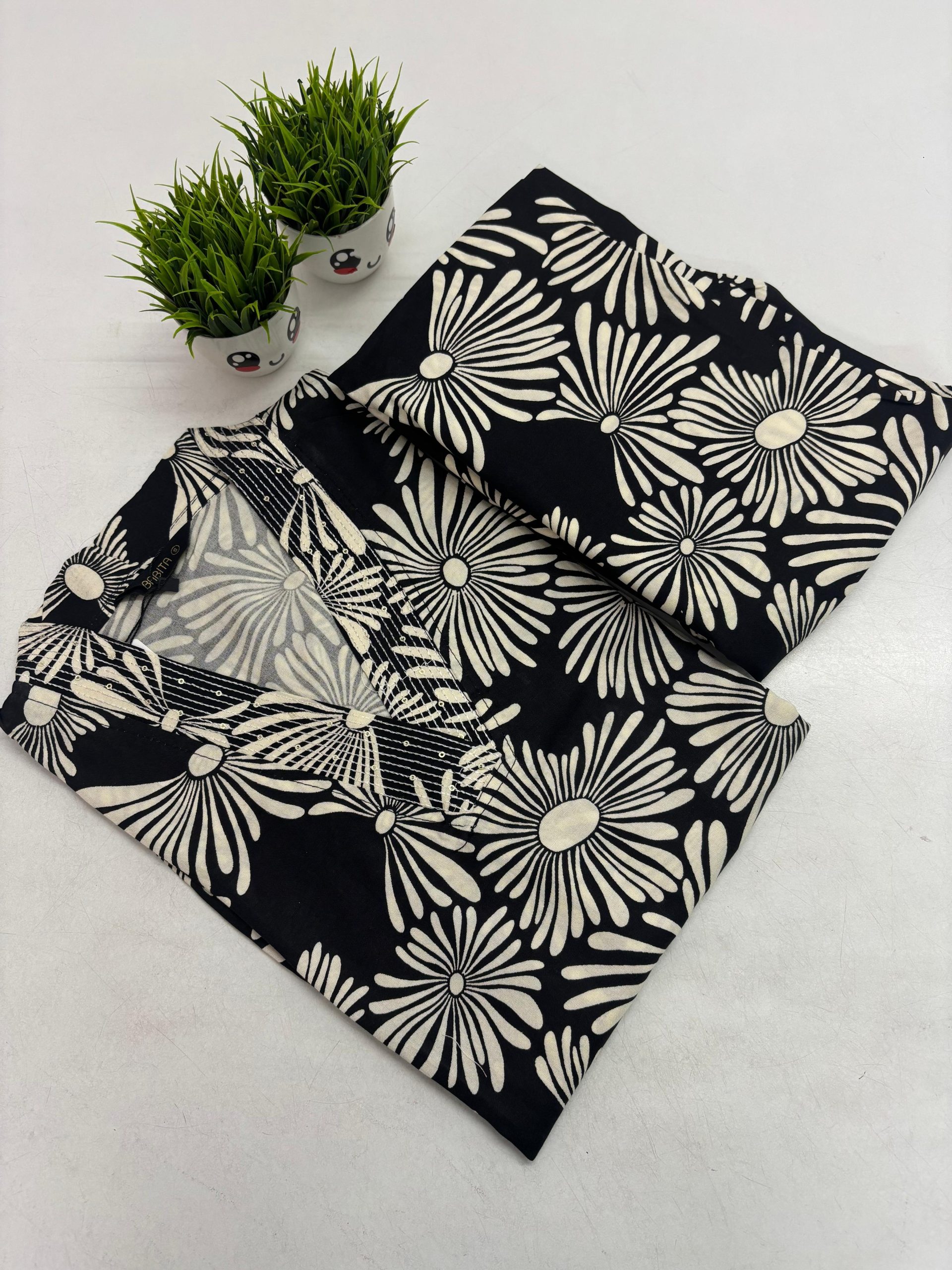 Ikkat Cotton Co-ord Set Pant stitched with Side Pocket Fabric: Cotton Top Model- Side Open Pant : Straight Cut Top