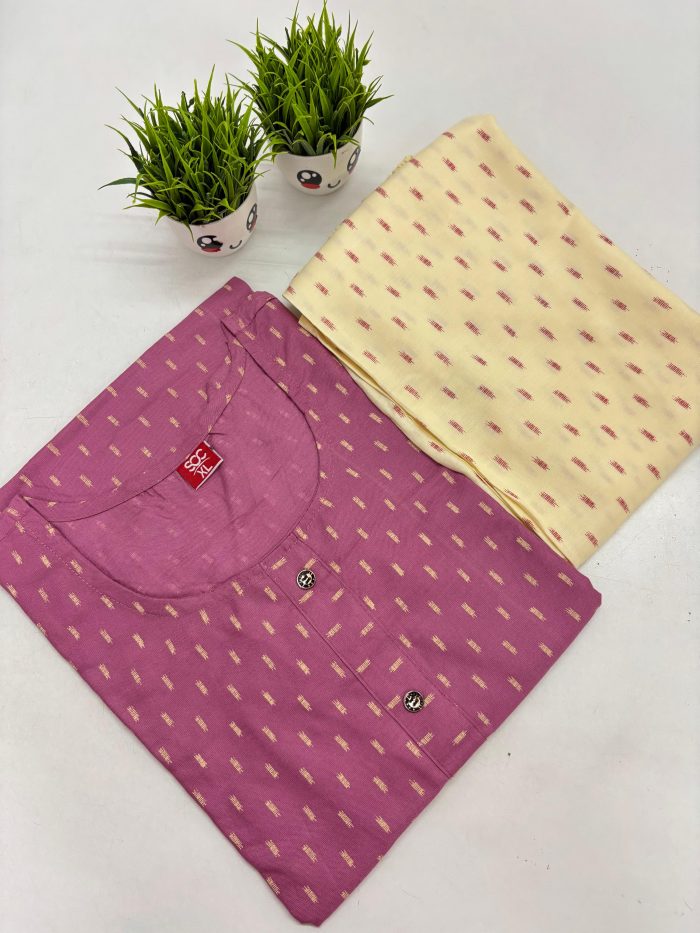Cotton Co-ord Set Fabric: Cotton Top Model : Side Open Top Length: 44 Inches Pant Length: 35 to 36 inches