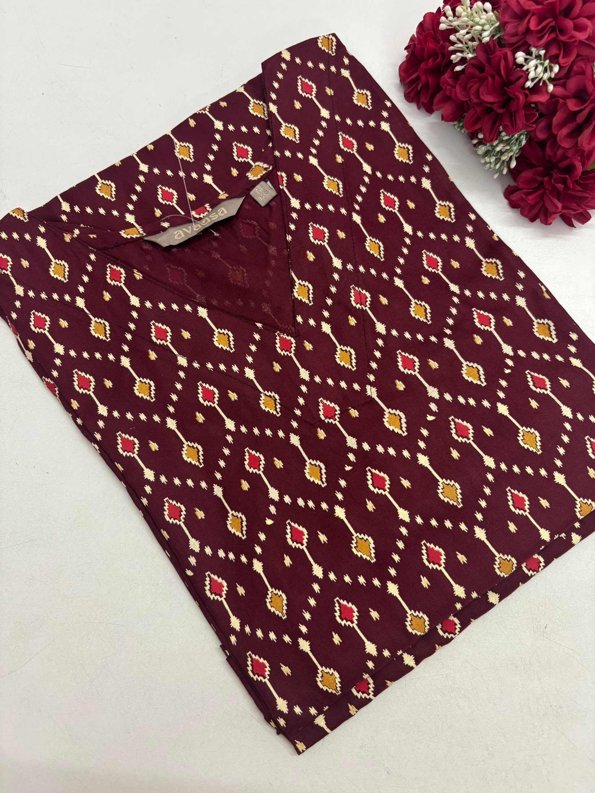 Regular Wear Side Open Kurti Sleeve-3/4 Material – Rayon LENGTH 41 INCHES SIZE CHART M 38 INCHES L 40 INCHES XL 42