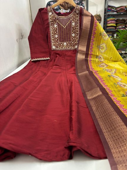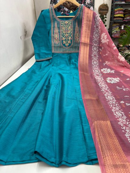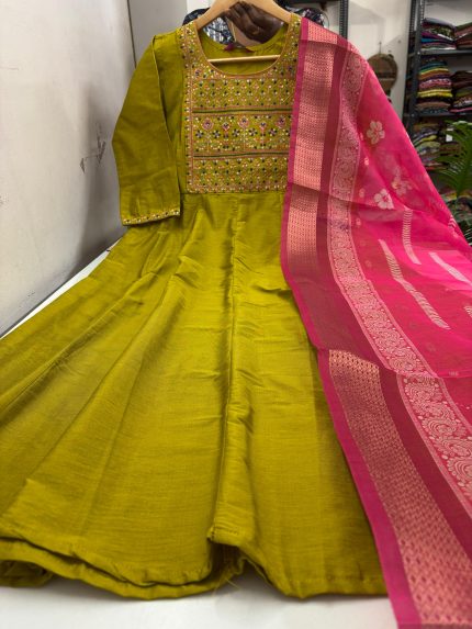 Festive wear Semi Raw Silk Anarkali With Dupatta Set Fabric: Semi Raw Silk Top Length : 47 to 48 inches