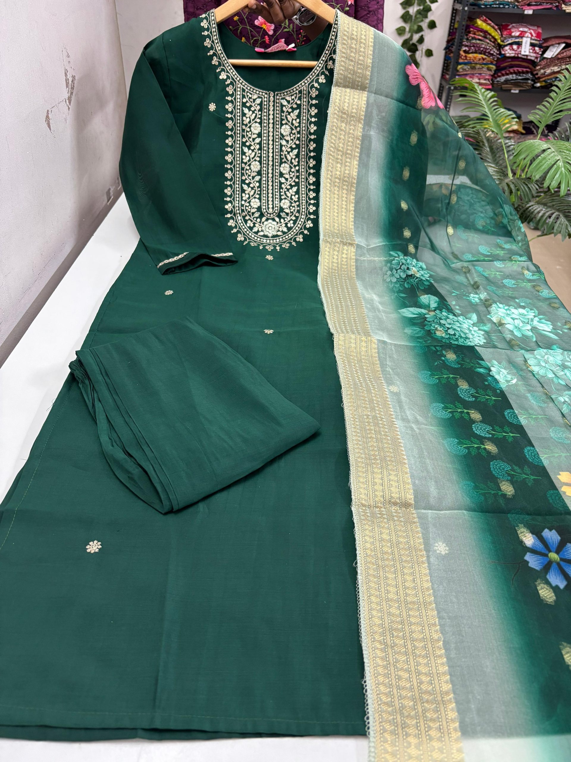 Premium Festive Wear Kurti With Pant & Dupatta Set With Lining Fabric: shimmer Tissue Silk Kurti Length : 44 inches