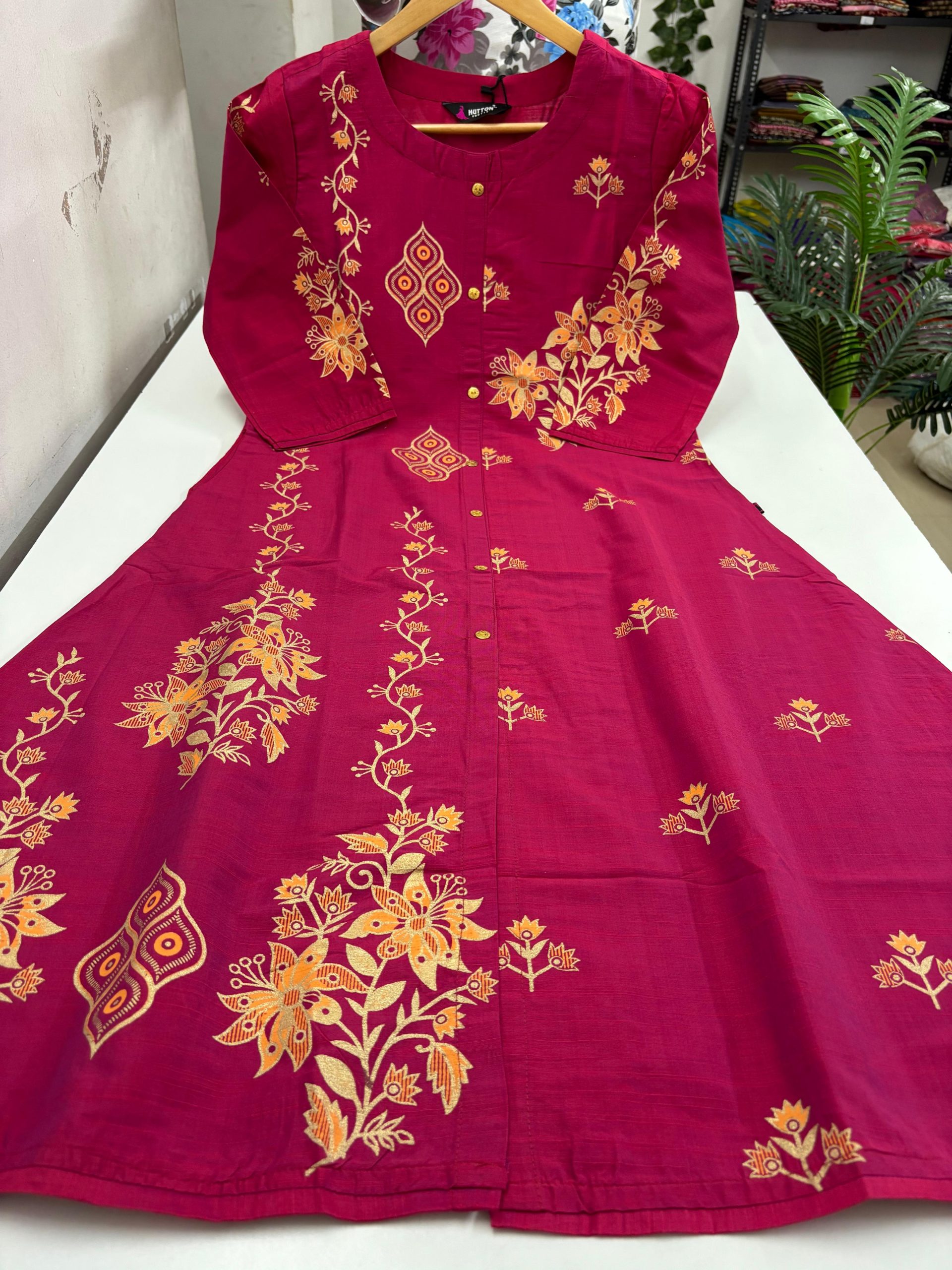 Premium Semi Raw Silk A Line Kurti With Side Pocket